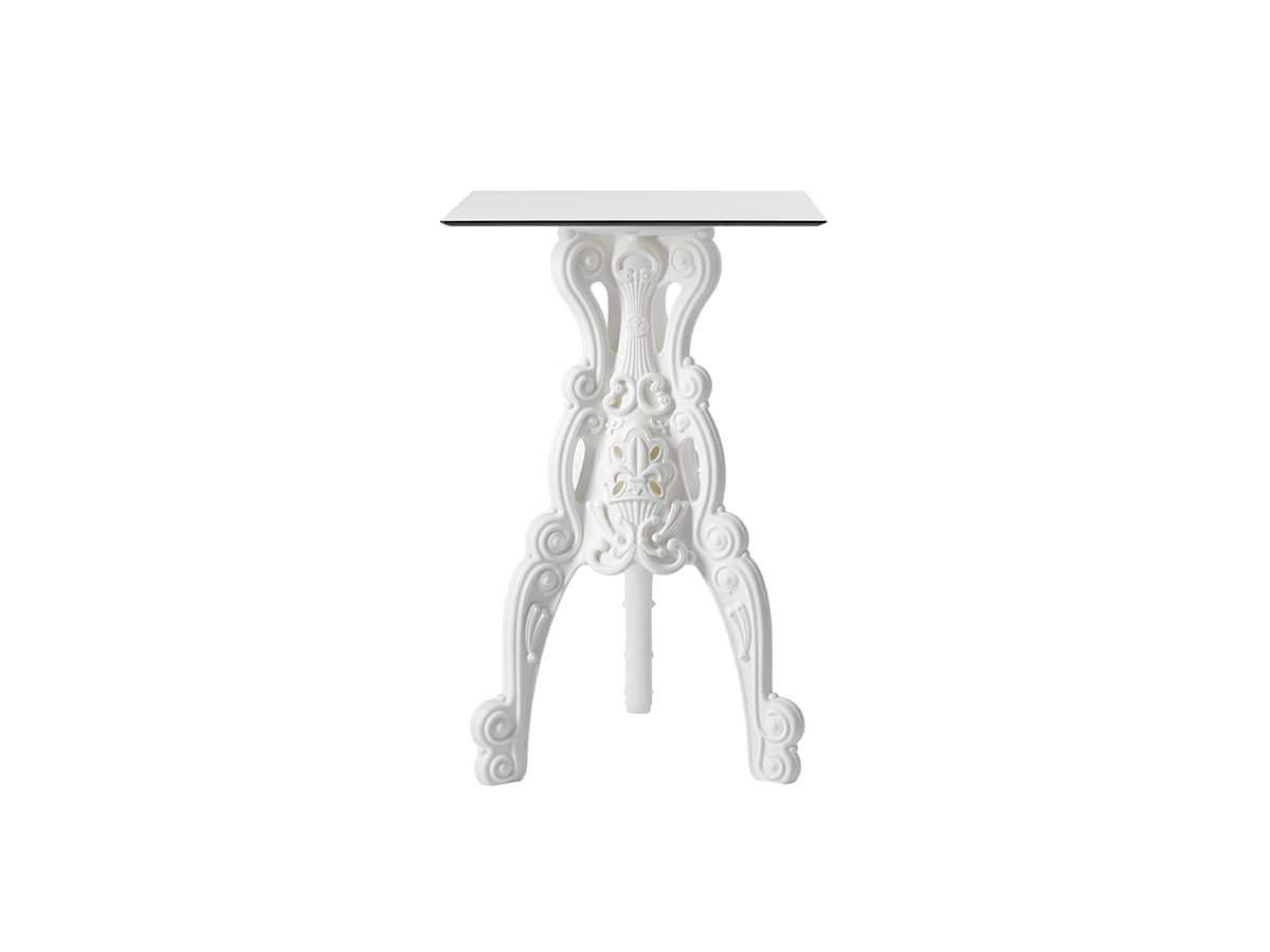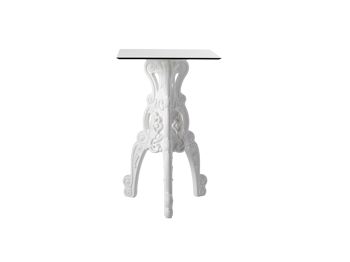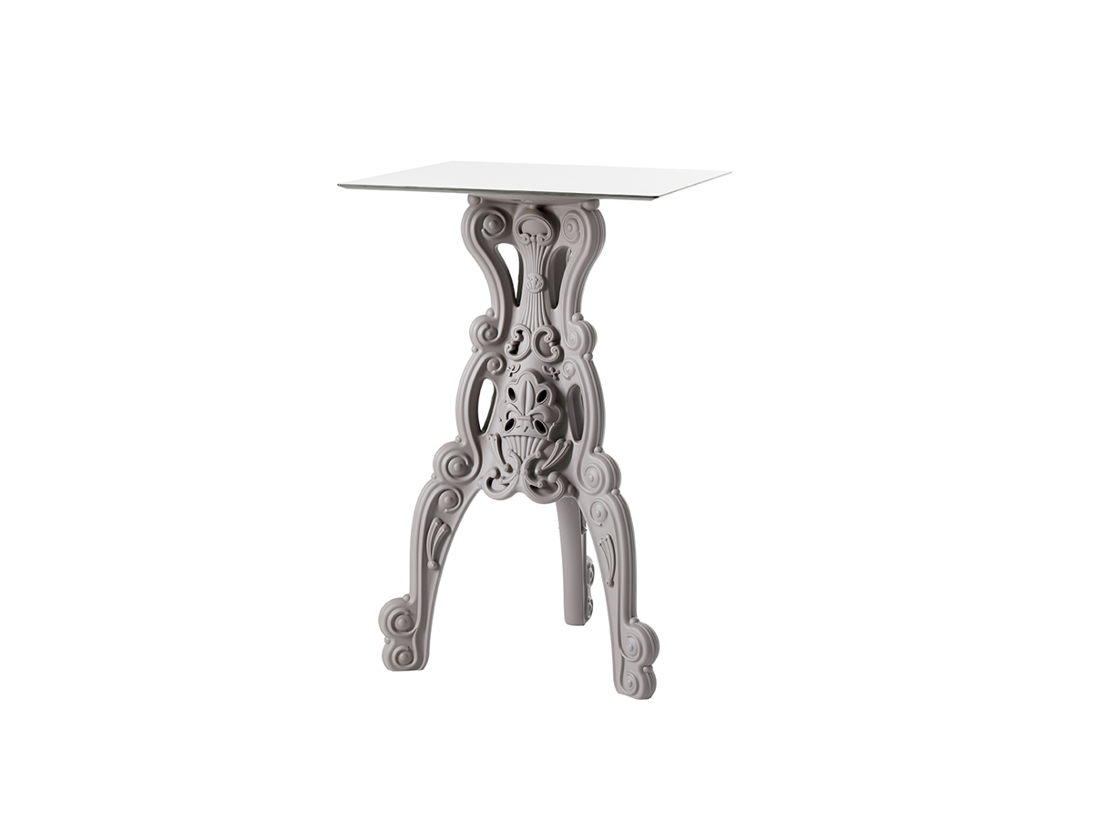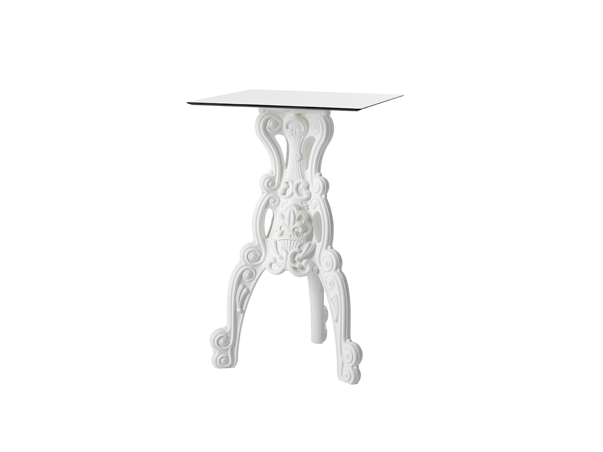 Il tavolo alto MASTER OF LOVE fa parte della linea Design Of Love Collection, e ne richiama lo stesso spirito ironico e lussuoso. Con le sue gambe arcuate, caratteristiche dei tavoli di stile barocco, ma con la contemporaneità dei suoi materiali, il prodotto è utilizzabile sia in ambienti indoor che outdoor e non può passare inosservato.
