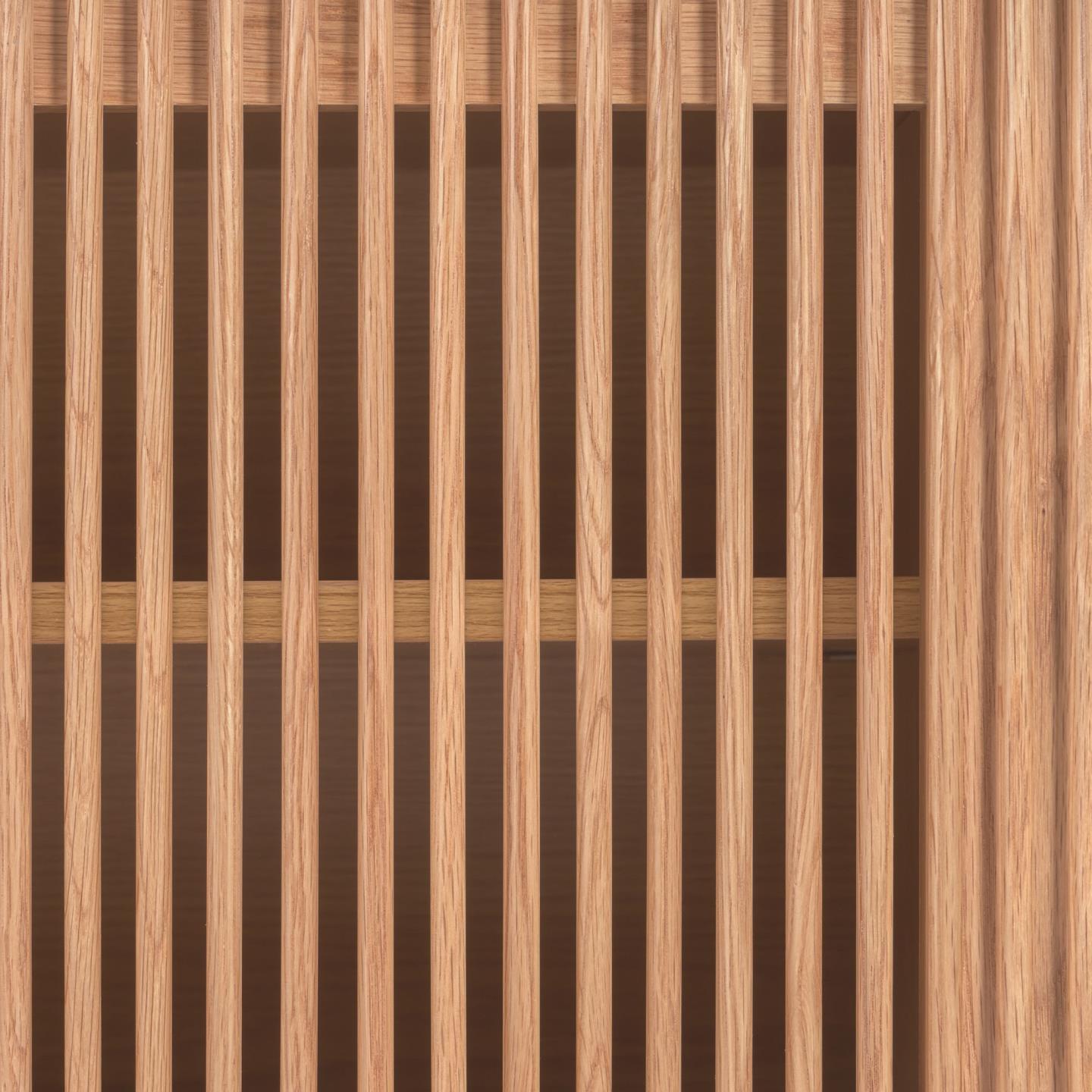 Consegna in 3/4 settimane| Materiale | 65% MDF E0 (pannello di fibra a media densità a basse emissioni di formaldeide classe E0), 20% Impiallacciato di rovere (Quercus alba), 10% Melamina, 5% Legno di frassino (Fraxinus Excelsior) |