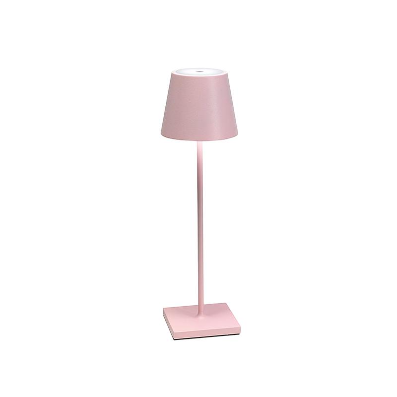 Oplaadbare tafellamp met contactoplaadbasis, met gelakte aluminium behuizing, polycarbonaat diffuser en LED-lichtbron.