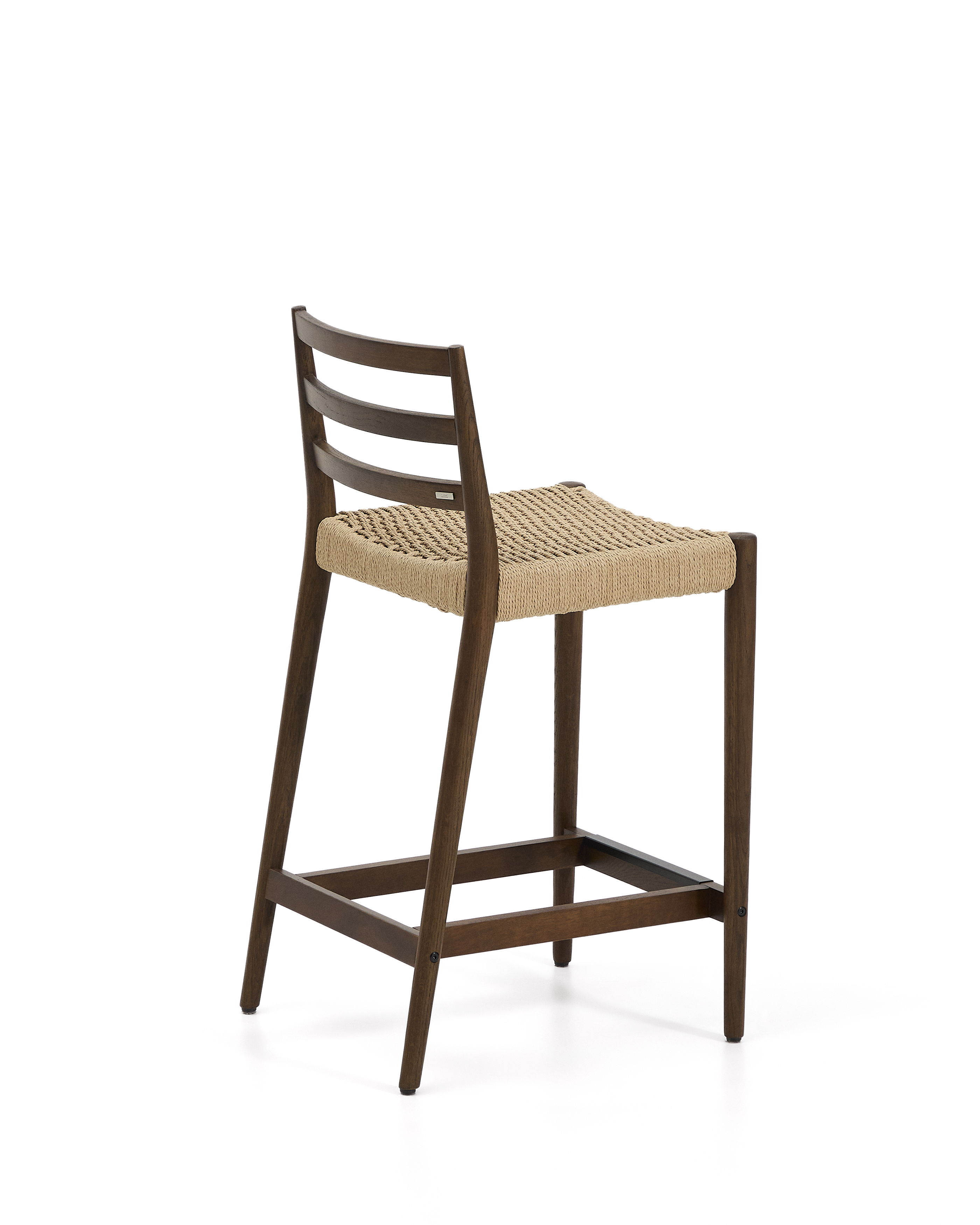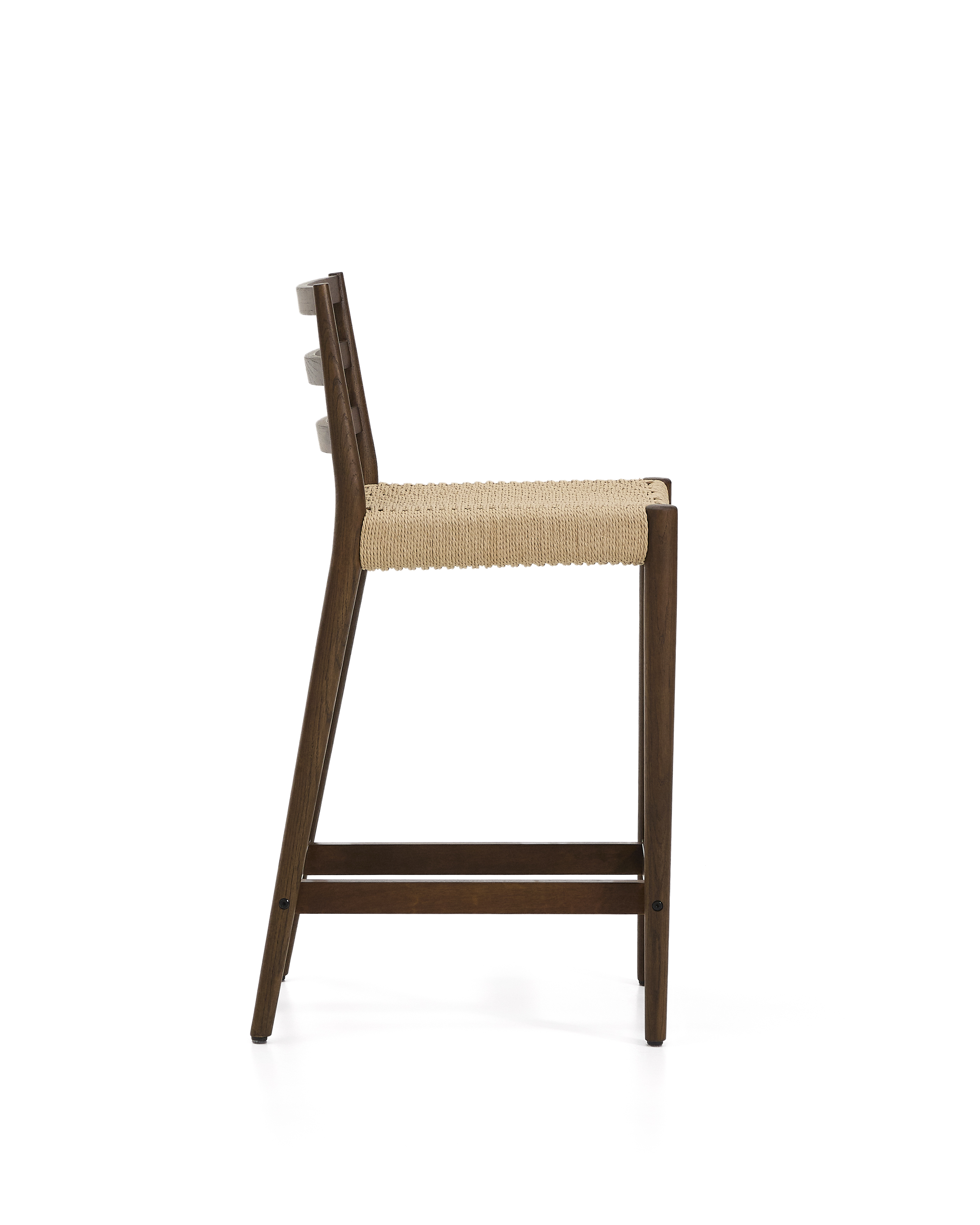 Analy kruk met massief eikenhouten rugleuning met walnootafwerking en touwzitting, 65 cm, 100% FSC-gecertificeerd.