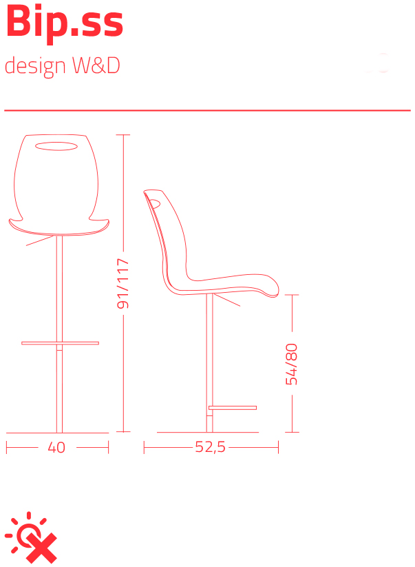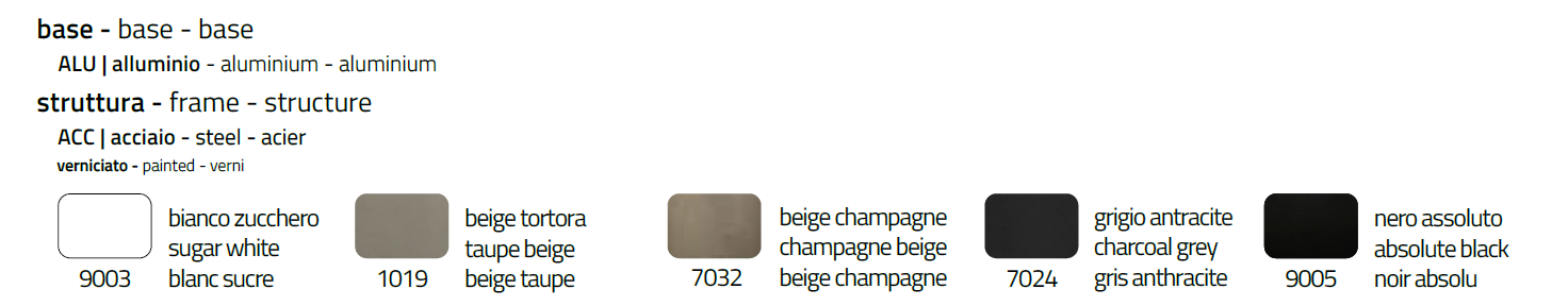 In hoogte verstelbare kruk met frame van aluminium en staal, stalen zuiger en draaibare zitting van wit composiet technopolymeer.