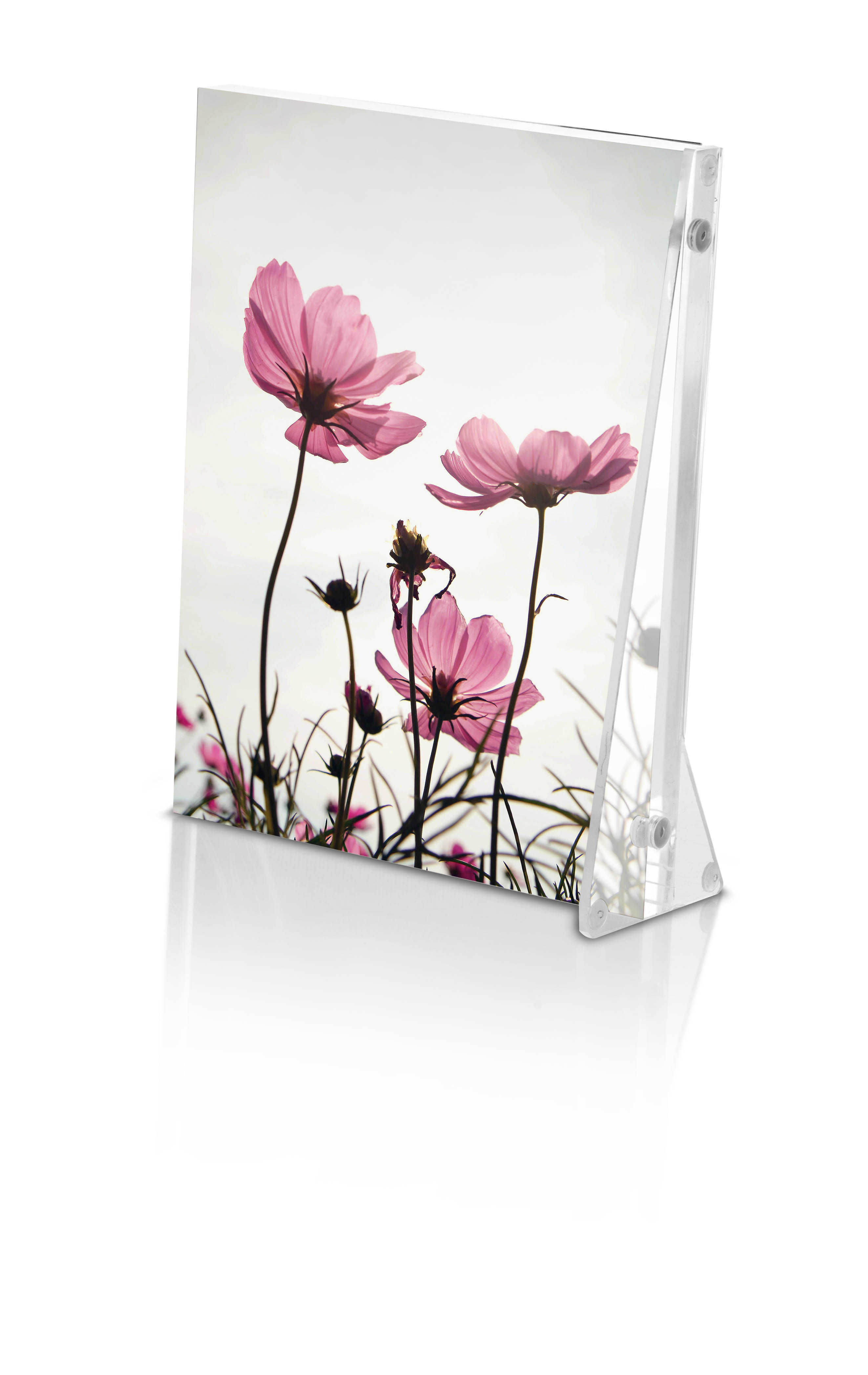 Transparante acryl fotolijst voor horizontale of verticale plaatsing.