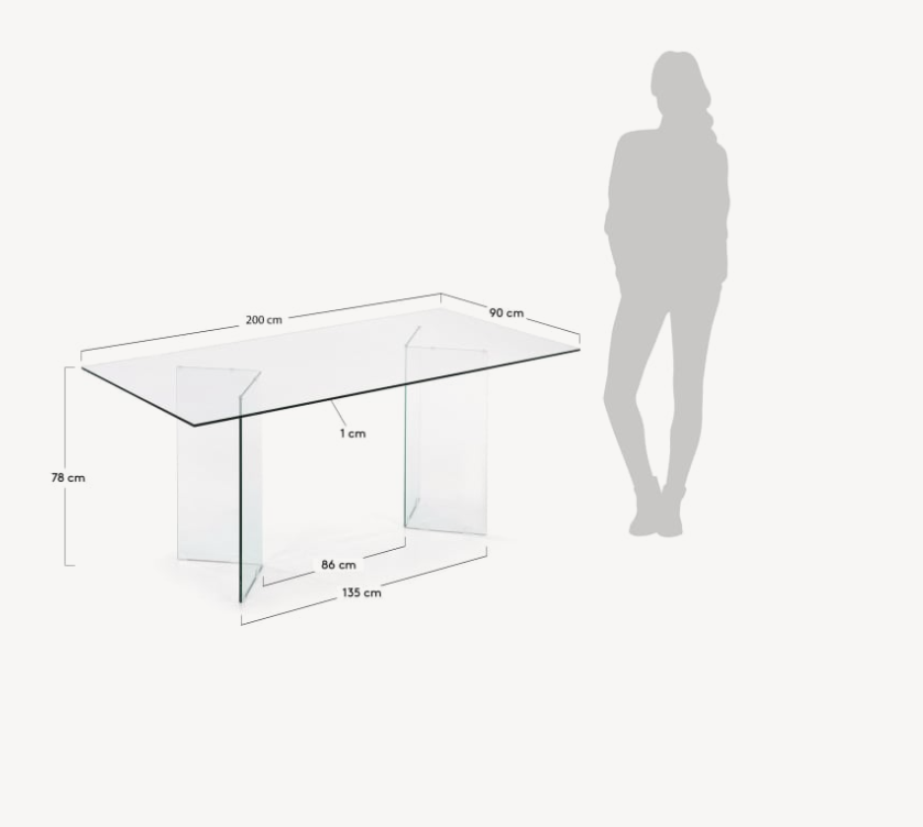 Het geharde glas is 10 mm dik. Wanneer het tegen het licht wordt gehouden, kunnen er kleine streepjes in het glas zichtbaar zijn.