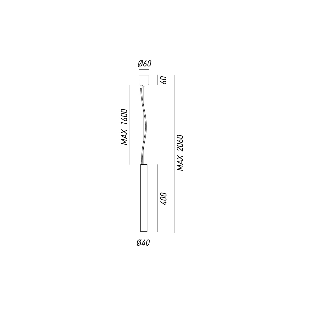 Diffuser: Ø40 mm x h.400 mm; maximale ophanghoogte 2060 mm; plafondrozet Ø60 mm