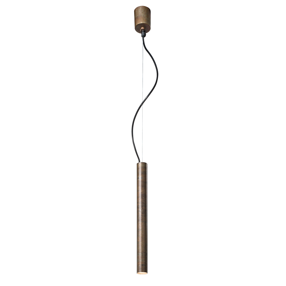 Cilindrische hanglamp van messing of ijzer.