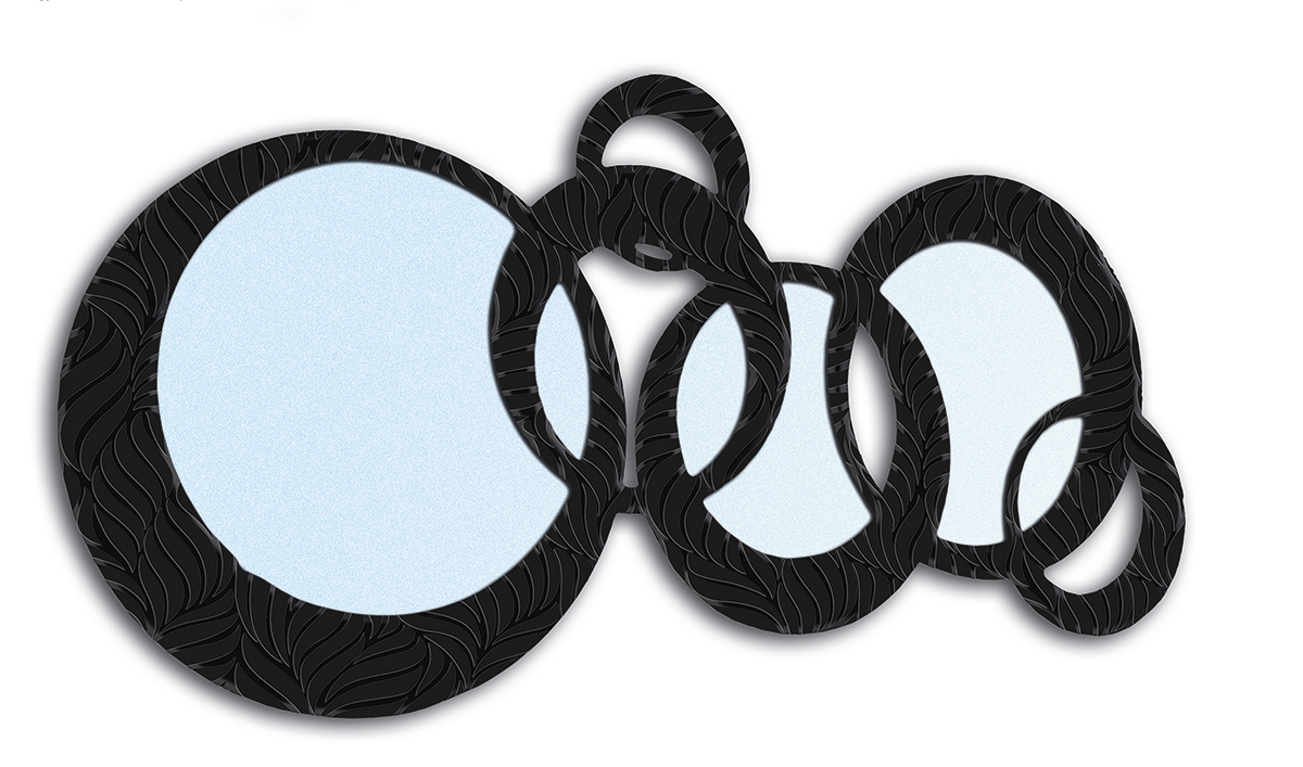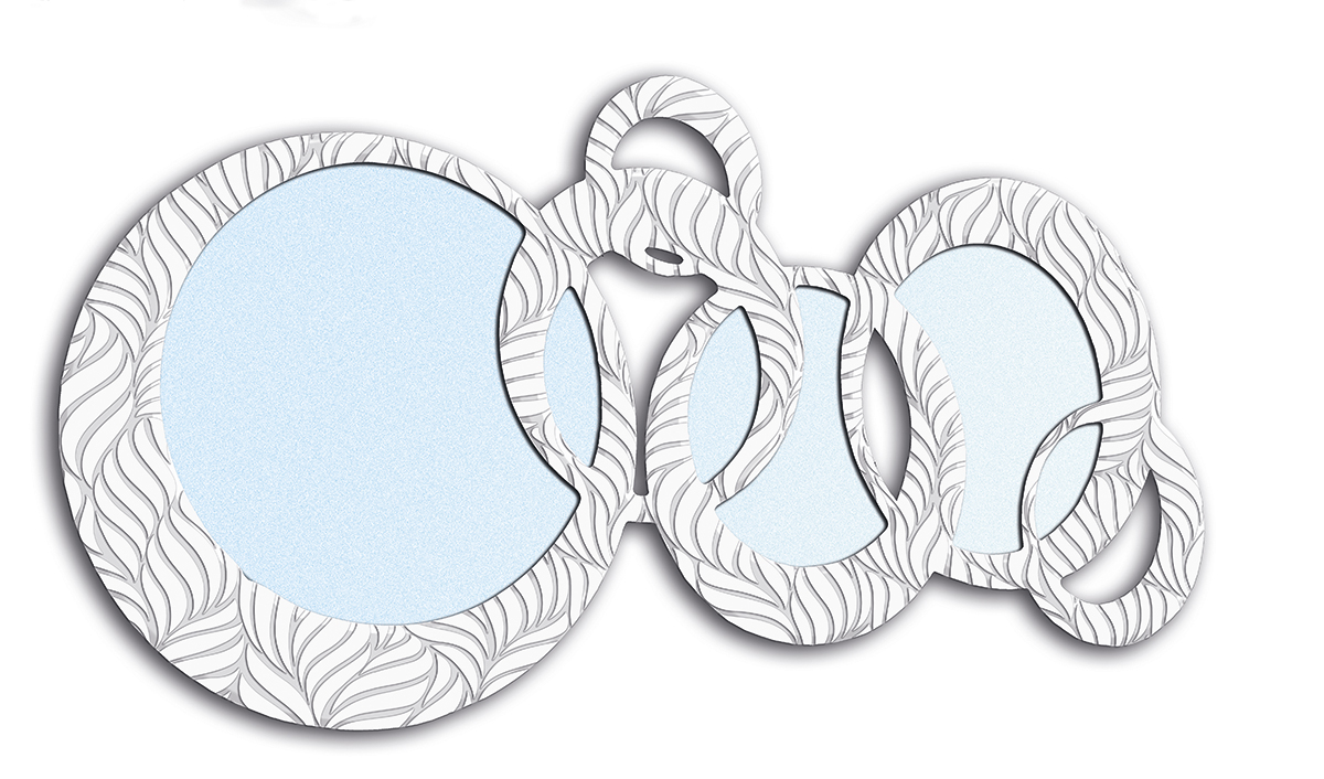 Spiegel met een gevormde en met de hand gedecoreerde structuur die een bloemblaadjespatroon creëert.