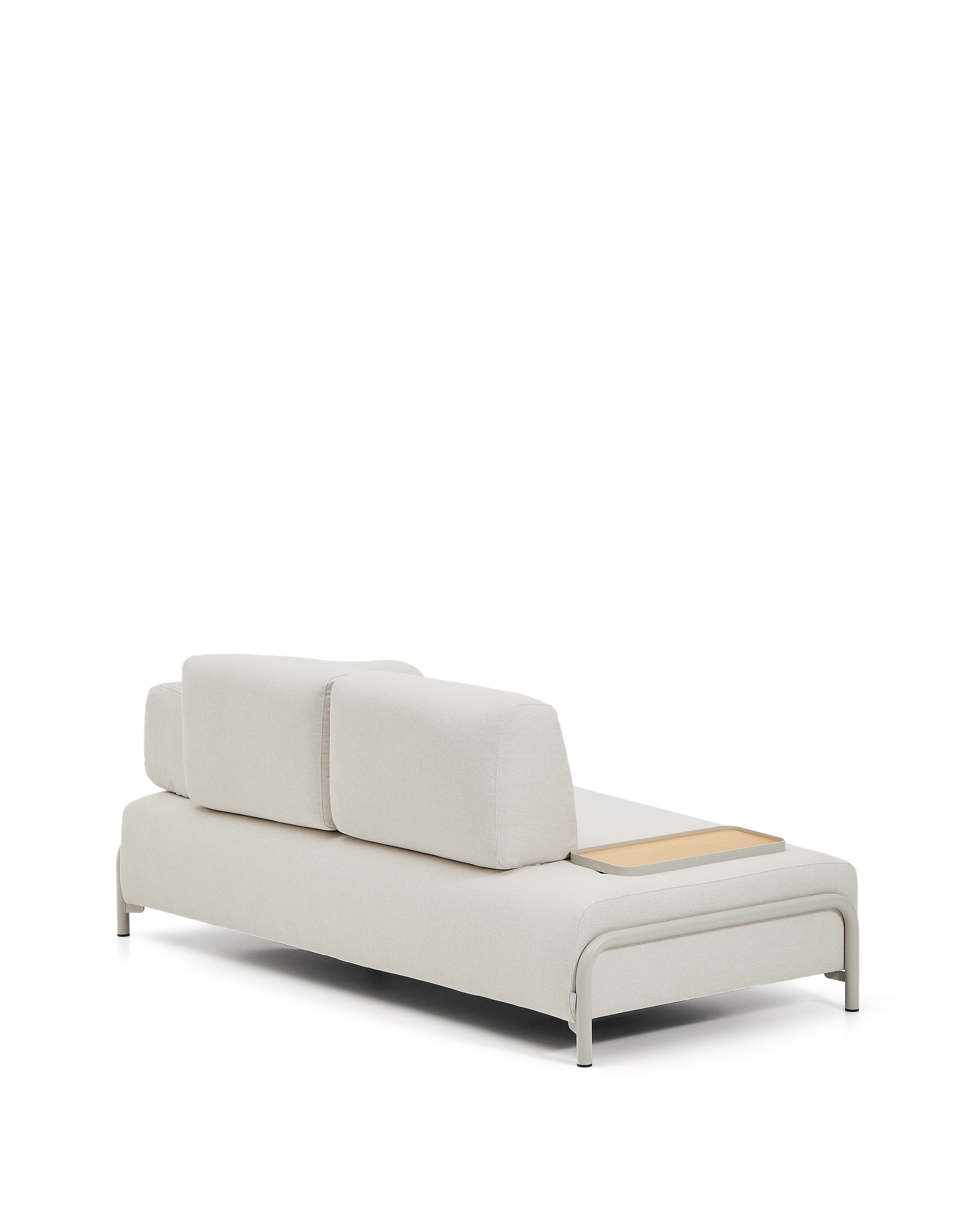 Deze 2-zitsbank herdefinieert comfort en functionaliteit in uw ruimte en is ontworpen om zich aan u aan te passen met maximaal comfort en stijl. Het gepoedercoate stalen frame met een microtextuur zorgt voor uitzonderlijke sterkte en duurzaamheid, terwijl het dienblad van eikenfineer een praktische touch toevoegt. Dankzij de zorgvuldige combinatie van elastische banden en meerdere lagen schuim – met dichtheden van 28 kg/m³ en 18 kg/m³ – biedt de middelharde zitting de perfecte balans tussen stevigheid en comfort, ideaal voor dagelijks gebruik. De armleuningen, rugleuningen en dienbladen zijn volledig afneembaar, waardoor de bank eenvoudig kan worden omgetoverd tot een bed van 98 x 200 cm – een veelzijdige oplossing voor elke ruimte. De bekleding, gemaakt van dubbelzijdig Crevin chenilleweefsel, is van hoge kwaliteit en duurzaam, met gerecycled polyester en een gemakkelijk te reinigen behandeling voor eenvoudig onderhoud en een lange levensduur. De stof is gemaakt van gerecycled materiaal van een Global Recycled Standard-gecertificeerde leverancier, wat zorgt voor een verminderd gebruik van grondstoffen en nieuwe materialen, en is OEKO-TEX® STANDARD 100-gecertificeerd voor een milieuvriendelijke en verantwoorde productie. Het FSC Mix Credit-gecertificeerde hout is gemaakt van een mix van materialen uit FSC-gecertificeerde bossen en FSC-gecontroleerd hout. Deze bank wordt in Europa geproduceerd, waardoor de CO2-uitstoot wordt verminderd en de impact op het milieu kleiner is. Deze bank combineert design, duurzaamheid en functionaliteit en is daarmee een slimme keuze voor wie op zoek is naar flexibele woonruimtes.