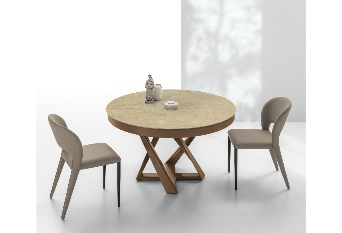 Uitschuifbare ronde tafel "Cronos" , voorzien van een stevige, gelakte metalen structuur, ideaal voor stabiliteit en duurzaamheid op lange termijn.