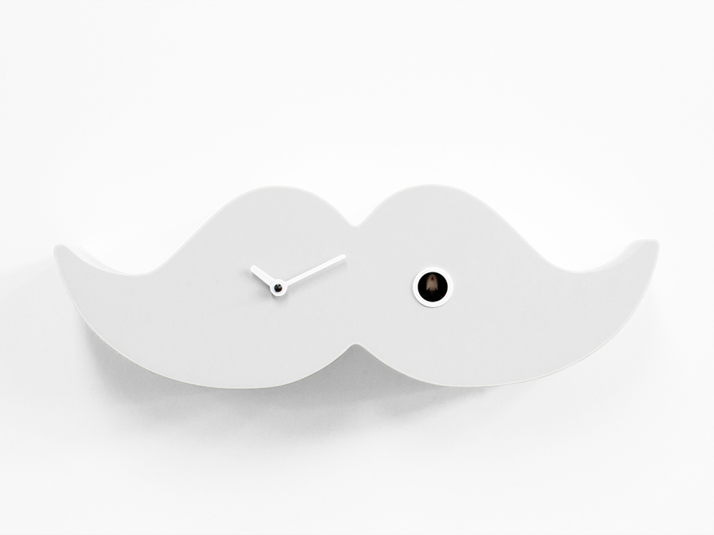 Retrostijl, geïnspireerd door andere tijdperken; dit is een moderne en ongewone interpretatie van de snor die in de negentiende eeuw in Londen werd gedragen door elegante, voorname en intellectuele mannen. De 'stuur'-snor was een van de belangrijkste symbolen van de Londense dandy en bepaalde zijn gezicht en uitdrukking. Tegenwoordig zijn snorren een symbool van de moderne dandy in metropolen over de hele wereld, en dankzij de koekoeksklok van Progetti kunnen ze nu worden opgehangen of op een bureau of plank worden geplaatst, wat een elegante, maar desgewenst ook ironische, toets aan de ruimte geeft. Dandy is gemaakt van hout en is verkrijgbaar in klassiek zwart en wit. Het uurwerk is voorzien van een batterijgevoed quartz uurwerk. Een lichtsensor schakelt het alarm automatisch uit bij gebrek aan licht.