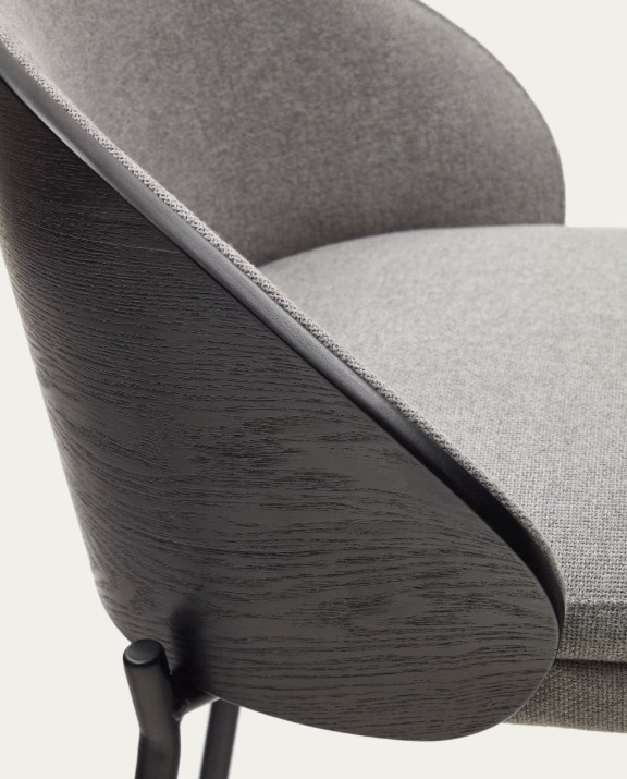 Eamy combineert essenhoutfineer, bekleding en metaal in een ontwerp dat perfect is om stijlvolle accenten toe te voegen aan gezellige momenten aan tafel na de maaltijd.