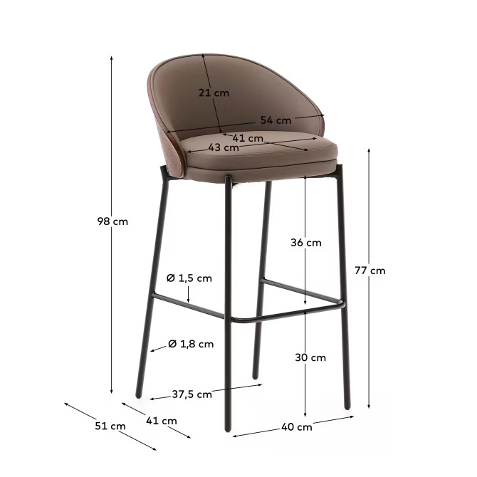 | Materialen | 35% E0 multiplex, 35% staal, 10% essenfineer (Fraxinus spp.), 10% schuim (polyurethaan), 10% synthetisch leer |