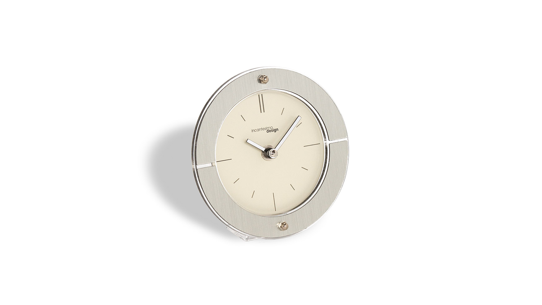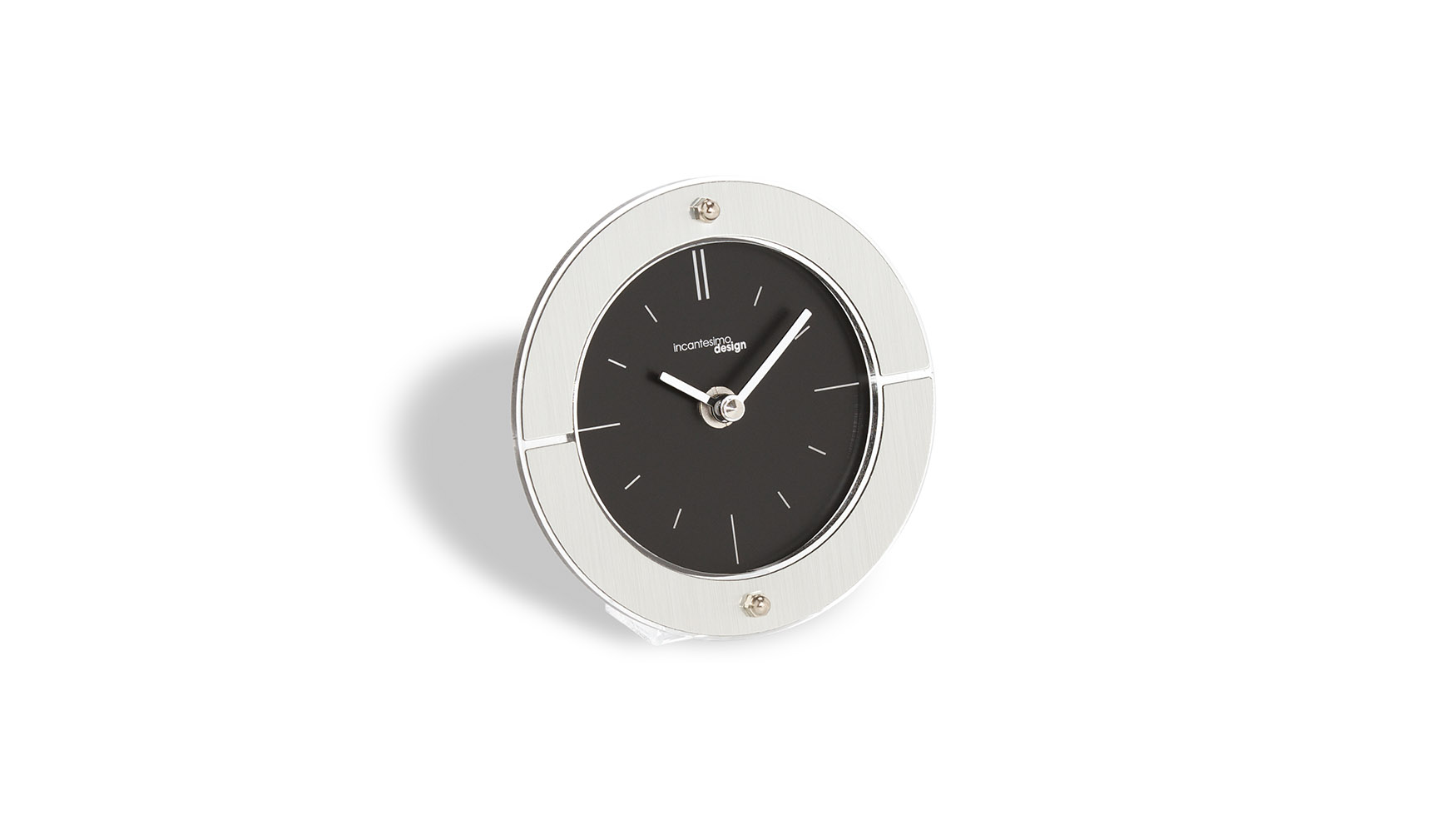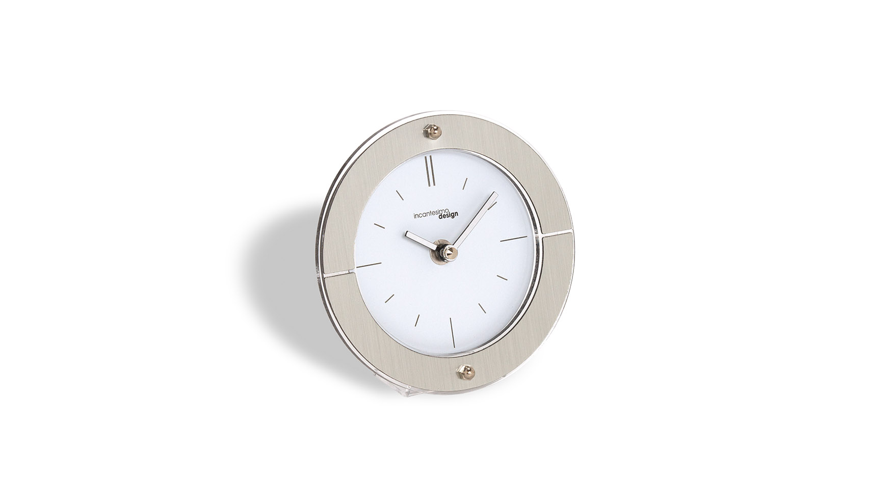 De horlogekast is uitgevoerd in metaalkleur, met de mogelijkheid om de kleur van de wijzerplaat te kiezen.