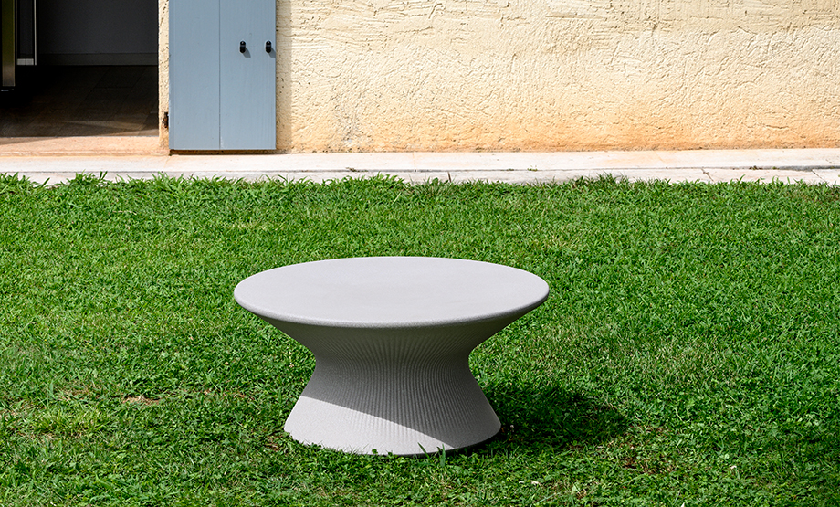 De sierlijke salontafel met het originele gestreepte oppervlak van de Fade-familie en karakteristieke afwerkingen die doen denken aan natuurlijke materialen.