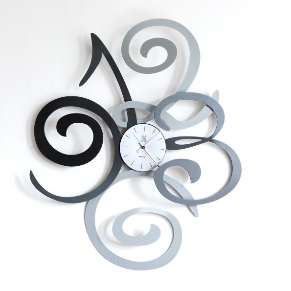 De klok is volledig vervaardigd uit geverfd metaal en heeft een harmonieuze bloemversiering die zich rond de centrale wijzerplaat uitstrekt, waardoor een verfijnd en romantisch scenografisch effect ontstaat. Elk exemplaar wordt in Italië gemaakt en met oog voor detail afgewerkt.