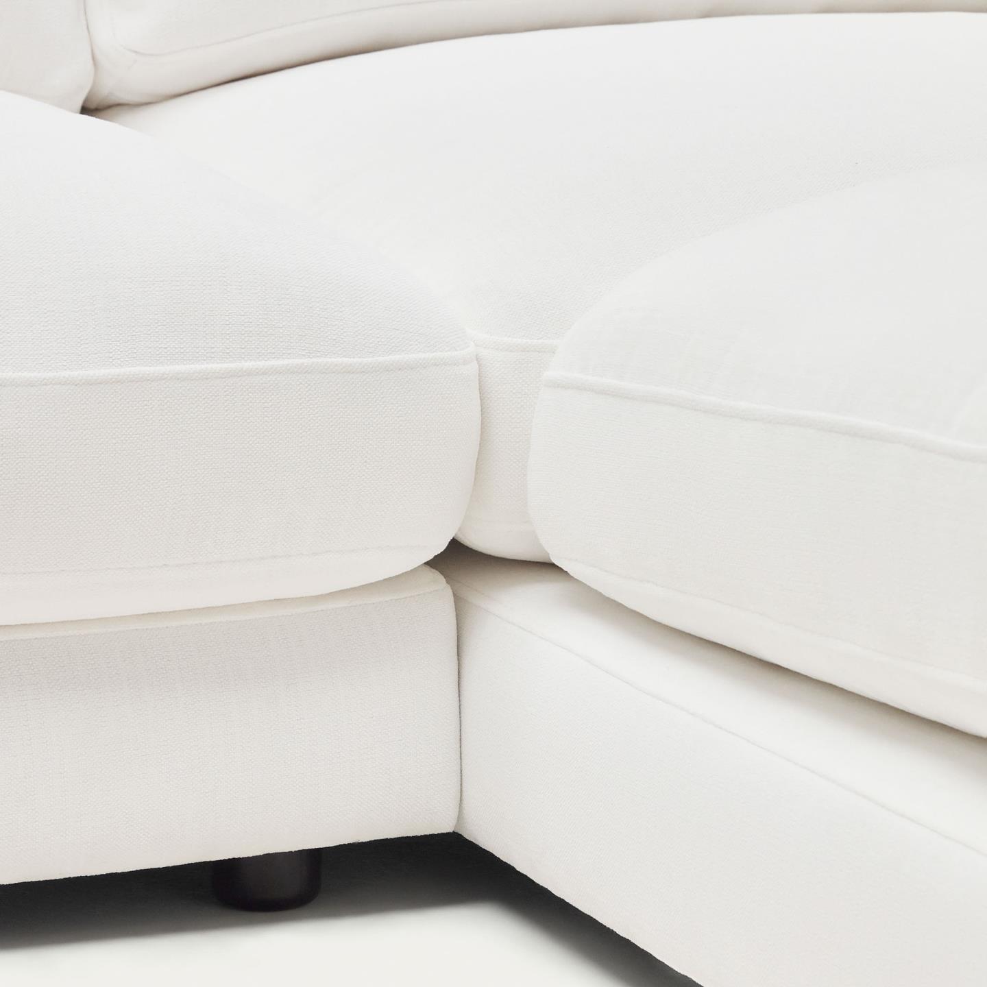 Gala combineert design, comfort en kwaliteit in een meubelstuk dat uw woonkamer transformeert in een ontspannen en elegante ruimte. De afgeronde vormen en ruime afmetingen creëren een uitnodigende sfeer, perfect om te genieten van speciale momenten met familie of vrienden. De hoogwaardige, fijn geweven chenille bekleding, gemaakt van polyester en katoen, biedt een zachte, aangename textuur en garandeert tegelijkertijd opmerkelijke sterkte en duurzaamheid. De bekleding is vlekbestendig behandeld, waardoor deze met een vochtige doek en water kan worden gereinigd. De hoezen van de zitting en rugleuning zijn afneembaar en machinewasbaar. De stoffenleverancier is OEKO-TEX® STANDARD 100 gecertificeerd voor een milieuvriendelijke en verantwoorde productie. De zitkussens zijn gevuld met donsachtige, nieuwe vezels voor een zachte en omhullende zitervaring. De vulling bestaat uit 100% zachte vezels, een siliconenvezel die een coconachtig gevoel en donsachtig comfort biedt, en een schuimkern met een dichtheid van 30 kg/m³, aan beide zijden bedekt met vezels, waardoor het kussen kan worden omgedraaid. Bovendien zijn er interne tussenschotten die zorgen voor een gelijkmatige vezelverdeling, waardoor optimale ondersteuning bij elk gebruik gegarandeerd is. De kussens zijn afneembaar en omkeerbaar. De interne structuur is gemaakt van FSC Mix Credit gecertificeerd grenenhout, vervaardigd met een mix van materialen afkomstig uit FSC-gecertificeerde bossen en FSC-gecontroleerd hout. De in Europa vervaardigde Gala-bank straalt kwaliteit en aandacht voor elk detail uit. Dit meubelstuk biedt design, comfort en duurzaamheid in een perfecte oplossing voor wie kwaliteit zoekt in elke hoek van het huis. Gala onderscheidt zich niet alleen door zijn elegante en veelzijdige stijl, maar ook door zijn vermogen om zich aan te passen aan dagelijkse behoeften, waardoor het de blikvanger in elke ruimte wordt.