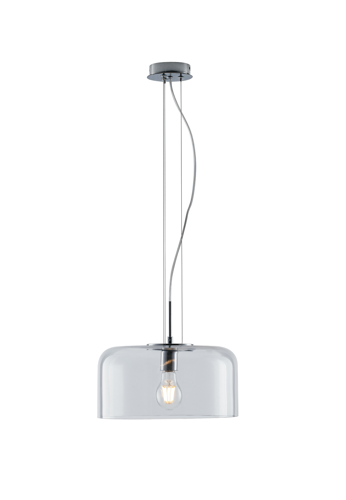 De transparante Gibus hanglamp met 1xE27 fitting is een kroonluchter met een modern en minimalistisch design, perfect om elke ruimte stijlvol te verlichten. Het heldere glas zorgt voor een gevoel van visuele lichtheid, waardoor het licht gelijkmatig wordt verspreid en de omringende inrichting wordt versterkt.
