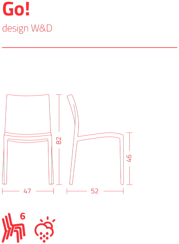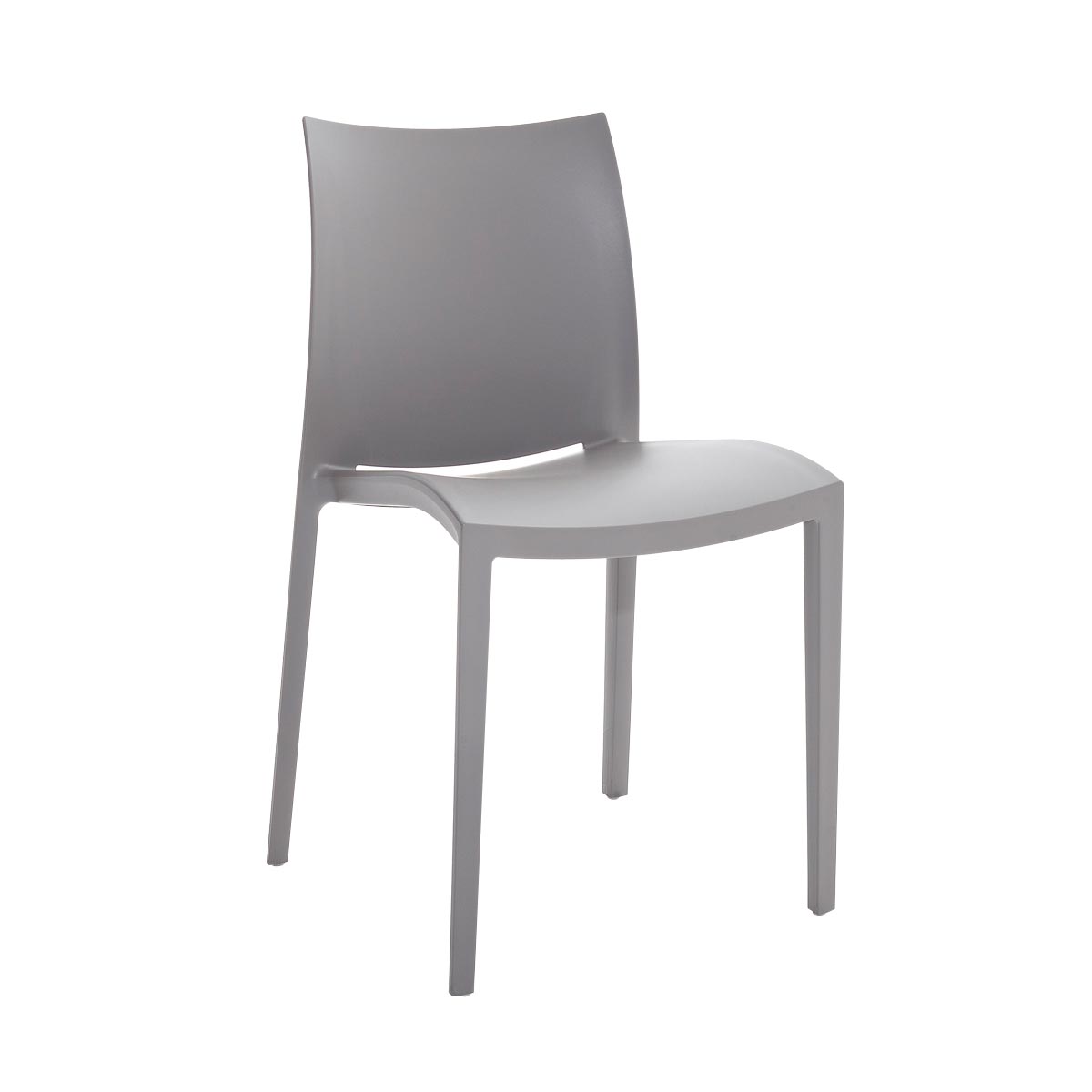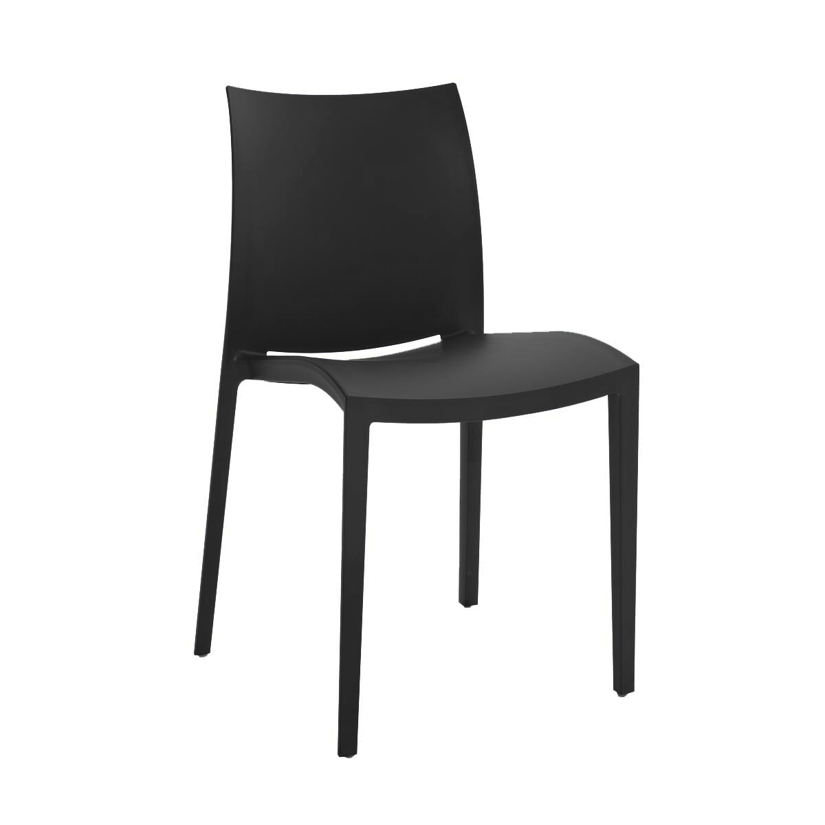 Stapelbare stoel van zacht aanvoelend polypropyleen, recyclebaar en geschikt voor gebruik bu Buiten.