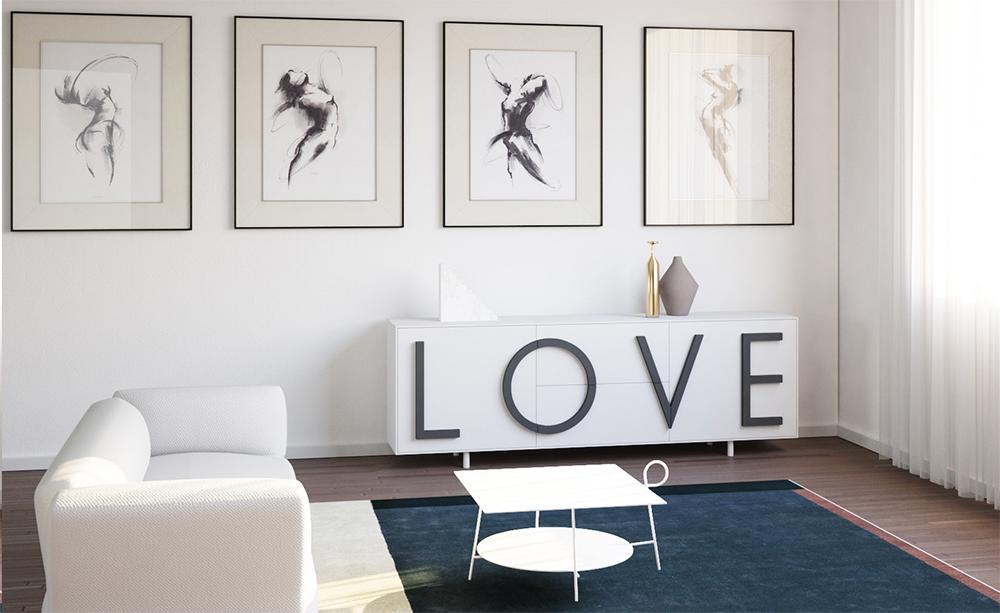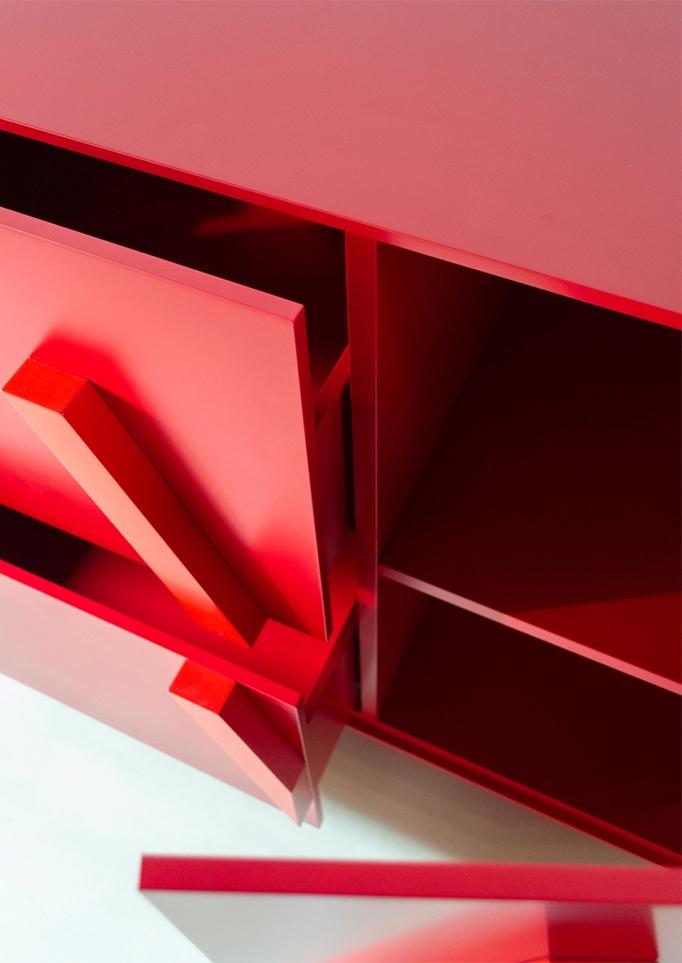 Het LOVE dressoir van Driade is een expressieve, tweedimensionale poster over liefde. Het combineert esthetiek met functionaliteit en fungeert als een handige opbergruimte, waarbij de letters LOVE naar buiten uitsteken en handgrepen vormen. Deze veelzijdige elementen zijn verkrijgbaar in talloze kleurencombinaties.