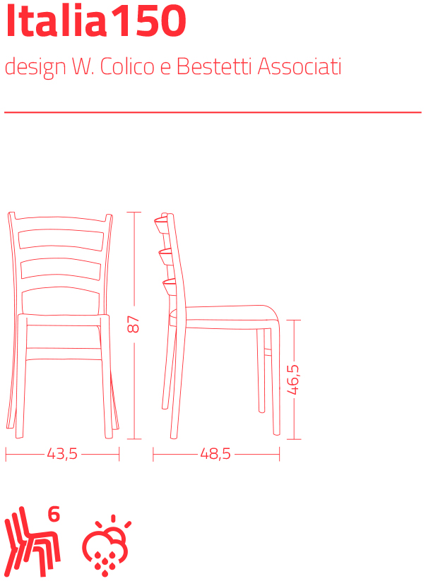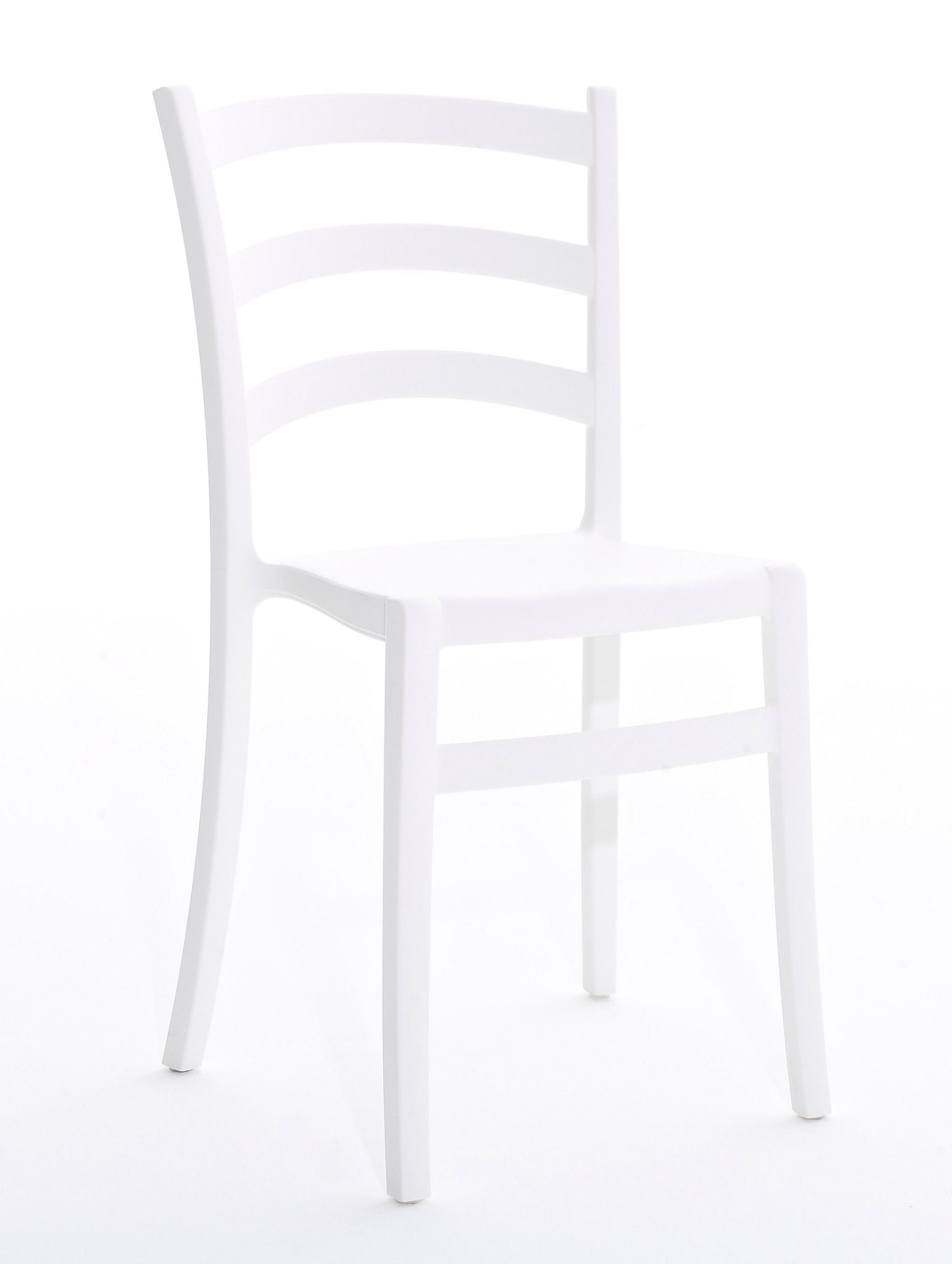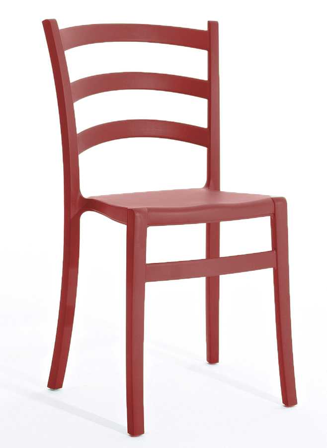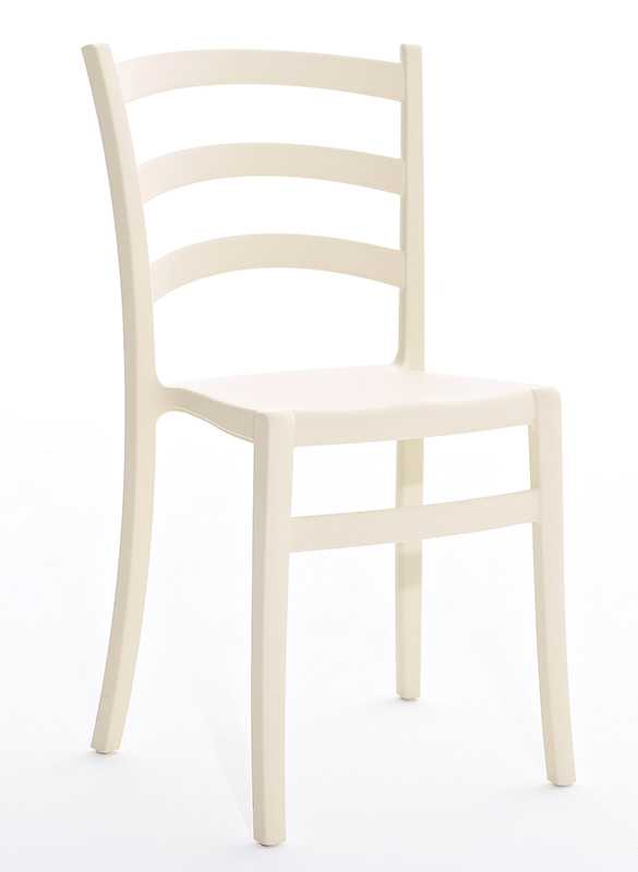 Stapelbare stoel van zacht aanvoelend polypropyleen, recyclebaar en geschikt voor gebruik bu Buiten.