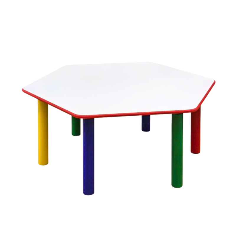 De zeshoekige kindertafel is ontworpen met een speciale constructie die stevigheid, veiligheid en een aantrekkelijk design combineert, perfect voor school, recreatie en thuis.