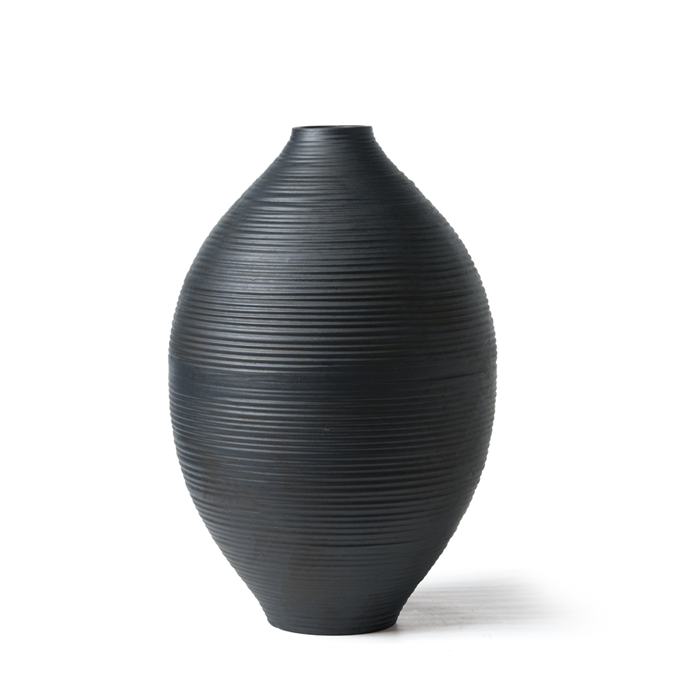 Gebogen vaas van mat keramiek. Ook verkrijgbaar in een gestreepte uitvoering.
