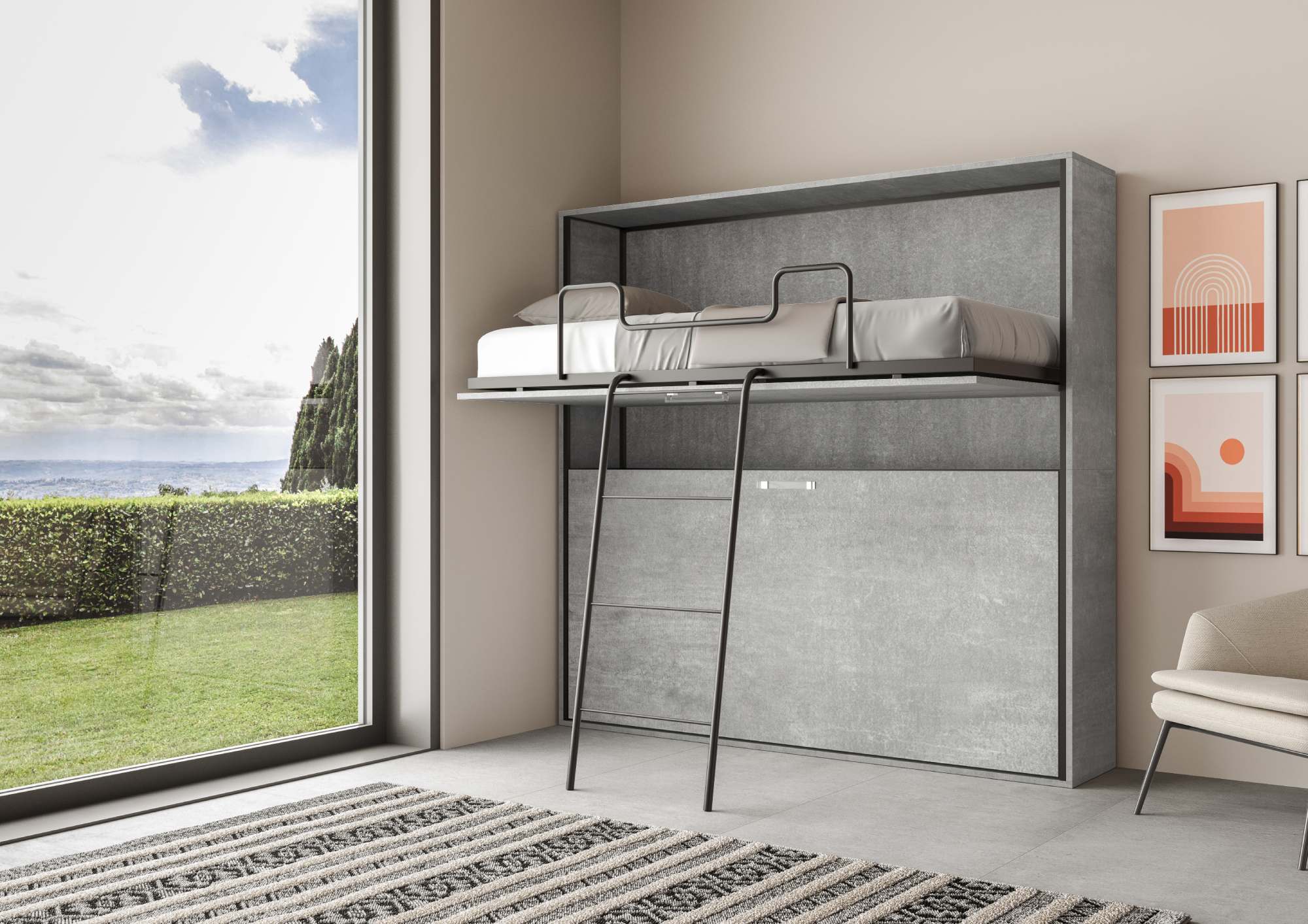 | Materiaal | Kando horizontaal wandbed met twee eenpersoons stapelbedden. Een praktische en originele ruimtebesparende oplossing waarmee u elke centimeter optimaal benut en die u in slechts enkele eenvoudige stappen kunt transformeren. |