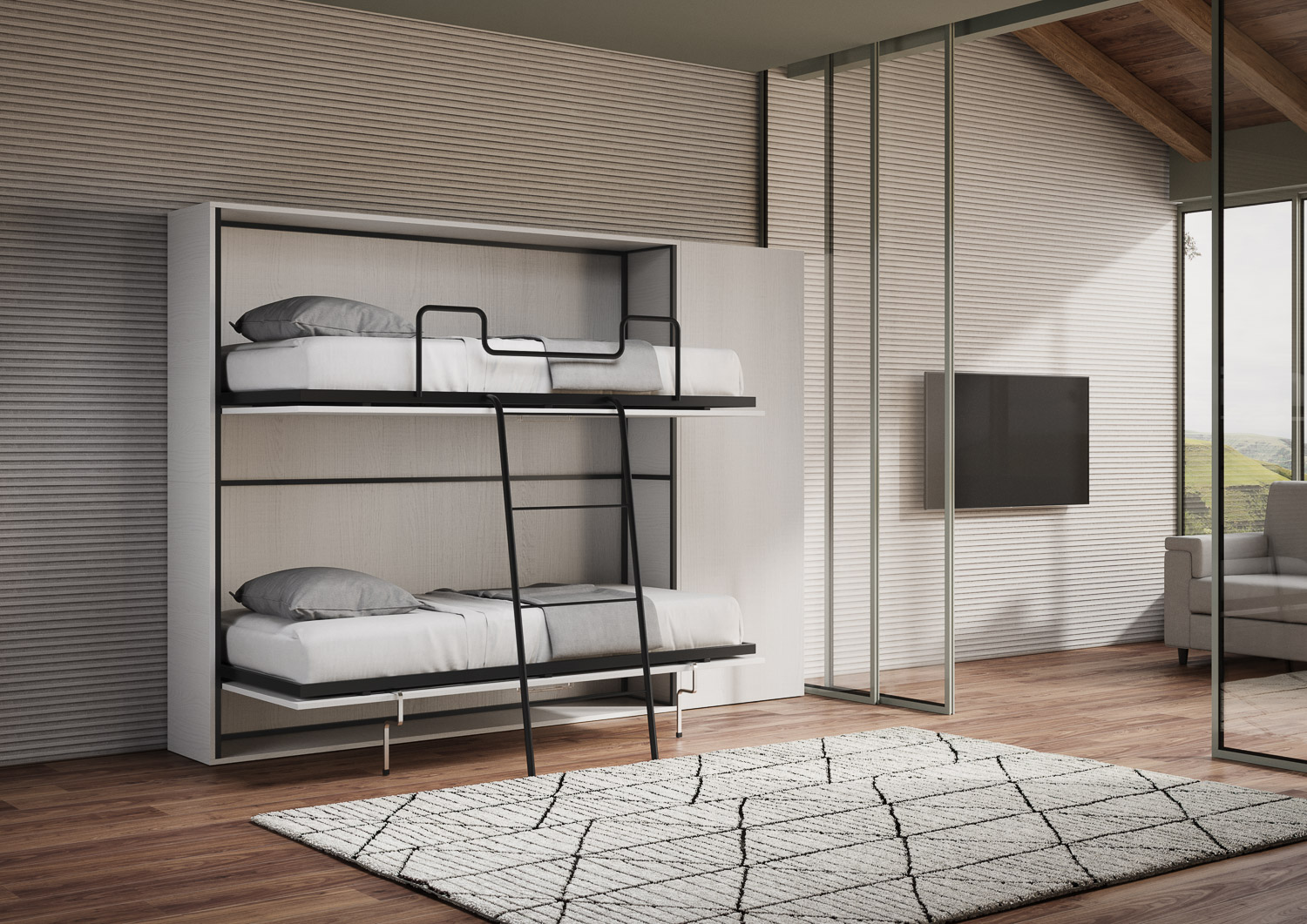 | Materiaal | Kando H is een tweepersoons opklapbed met een kleine maar ruime kledingkast met één deur. Dit is een originele en functionele oplossing die de beschikbare ruimte optimaal benut, met een diepte van slechts 39,2 cm wanneer gesloten. Kando H biedt de |