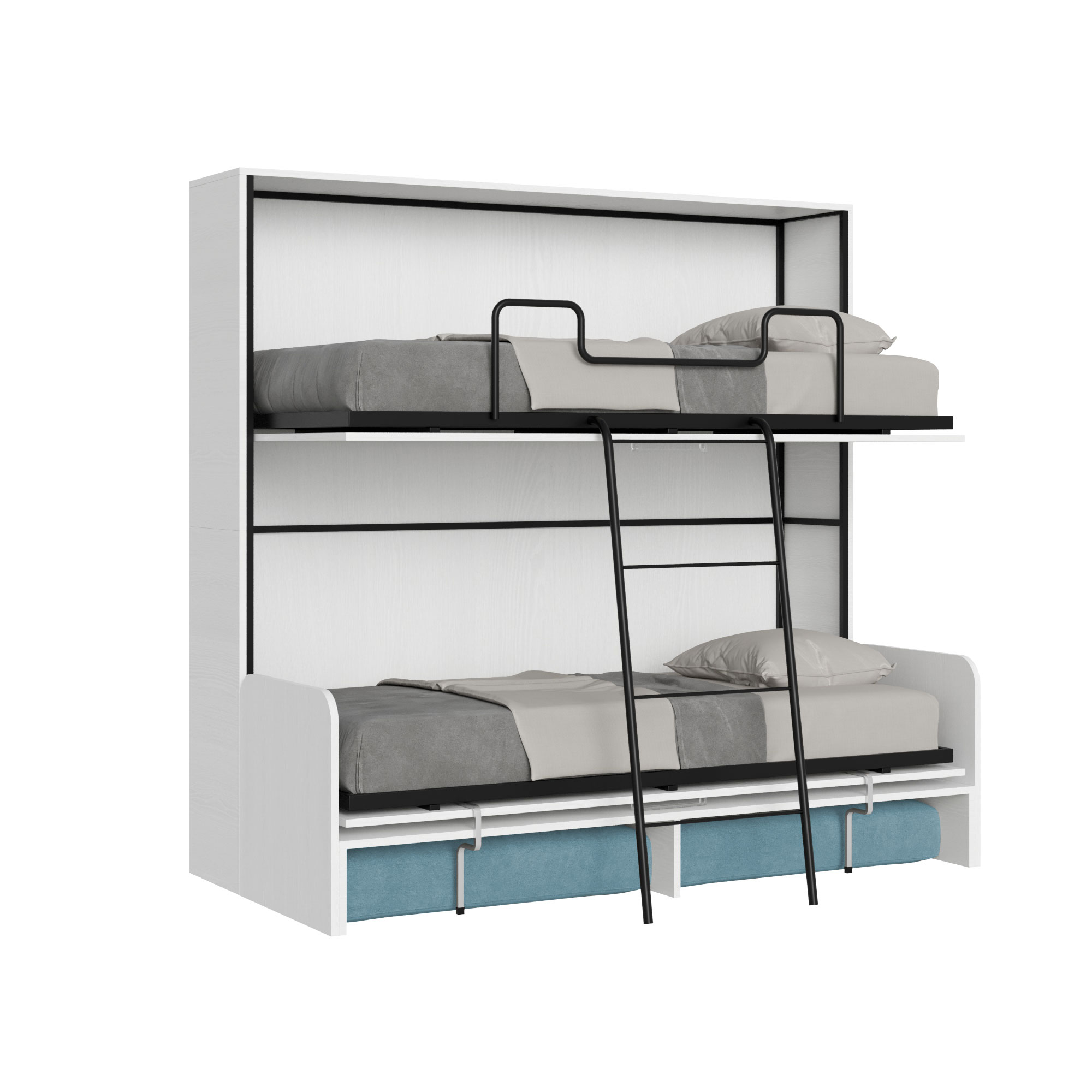| Materiaal | Kando horizontaal wandbed, versie met twee eenpersoons stapelbedden en een bank. Dit ruimtebesparende meubelstuk is ideaal voor de woonkamer: overdag dient het als comfortabele bank en wanneer nodig, verandert het snel in een knus bed, en biedt het zowel |