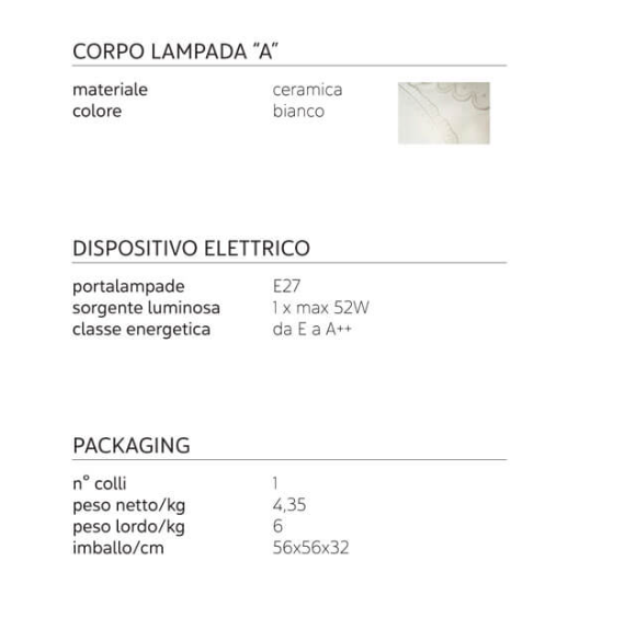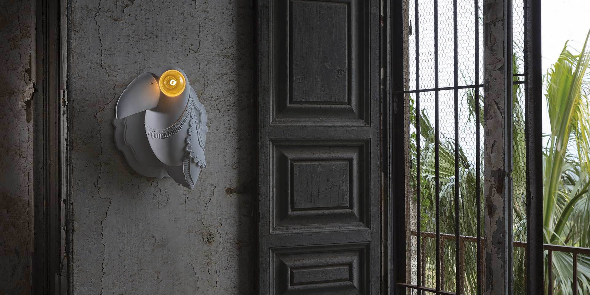 Cubano, een lichtgevende sculptuur die een ruimte verrijkt met zijn poëtische en ongewone aanwezigheid. Het ruwe keramiek heeft een werkelijk elegante matte en fluweelachtige afwerking, verrijkt met verfijnde barokdetails zoals kant en borduurwerk. De aanbevolen lamp is een 53W E27 siergloeilamp (niet meegeleverd), die, wanneer zichtbaar, het vogeloog op een nieuwe manier interpreteert voor een perfect esthetisch effect. Deze decoratieve en dramatische lamp is niet geschikt voor ruimtes die intens licht vereisen.