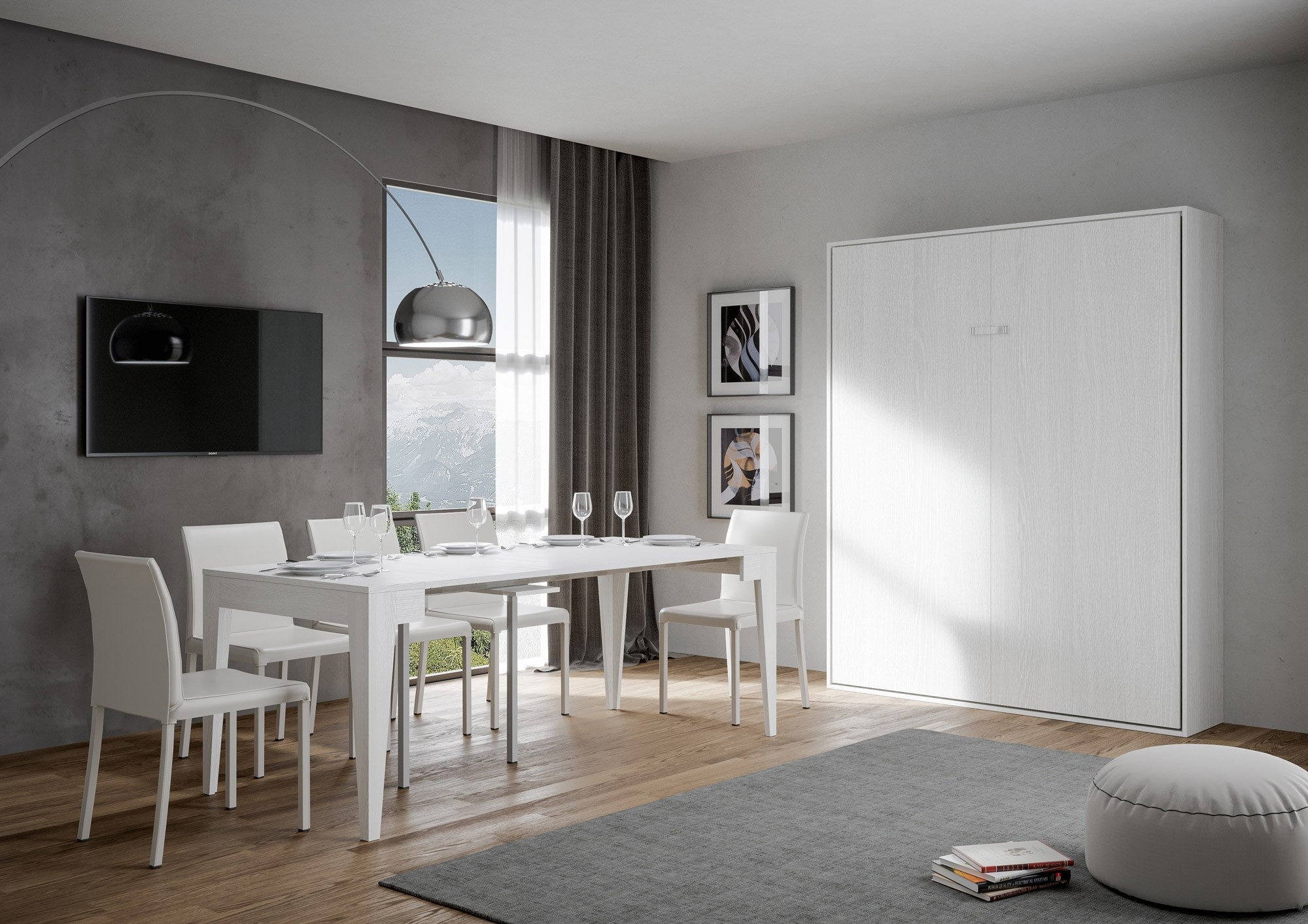 | Materiaal | Het Kentaro 160 cm verticale wandbed biedt al het comfort dat u nodig heeft in een zeer kleine ruimte: slechts 39,2 cm van de muur; uitgeklapt neemt het niet meer ruimte in beslag dan een normaal bed, slechts 215 cm. Bijzonder geschikt voor studioappartem |