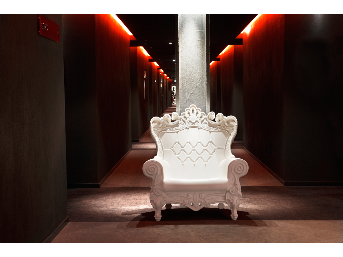 De Queen of Love fauteuil maakt deel uit van de originele Design of Love collectie die onlangs door SLIDE is gepresenteerd en die is voorzien van rococo-details en -afwerkingen. Elegant en verfijnd, ironisch en speels, maar bovenal uniek en onderscheidend: de Queen of Love is niet alleen een luxueuze barokke fauteuil, maar ook een onweerstaanbaar designstuk dat zich aanpast aan elke omgeving, zowel binnen als buiten, zoals woonkamers, winkels, restaurants en kantoren, en is tevens ideaal voor projecten in de zakelijke markt.
