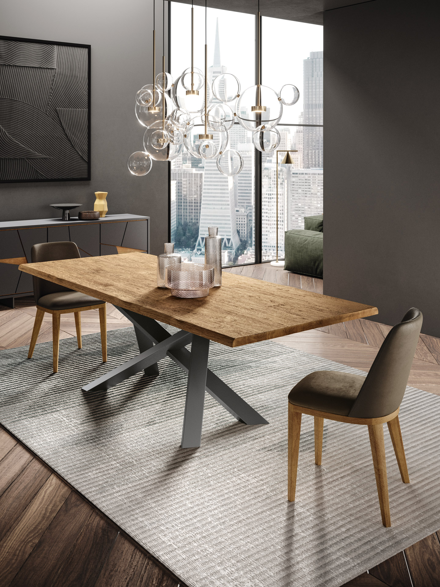 Ontdek de Crossing-tafel, de ideale keuze om uw eetkamer of keuken stijlvol en functioneel te verfraaien. Met zijn massief houten blad biedt deze tafel ongeëvenaarde stevigheid, perfect voor een moderne en duurzame inrichting.