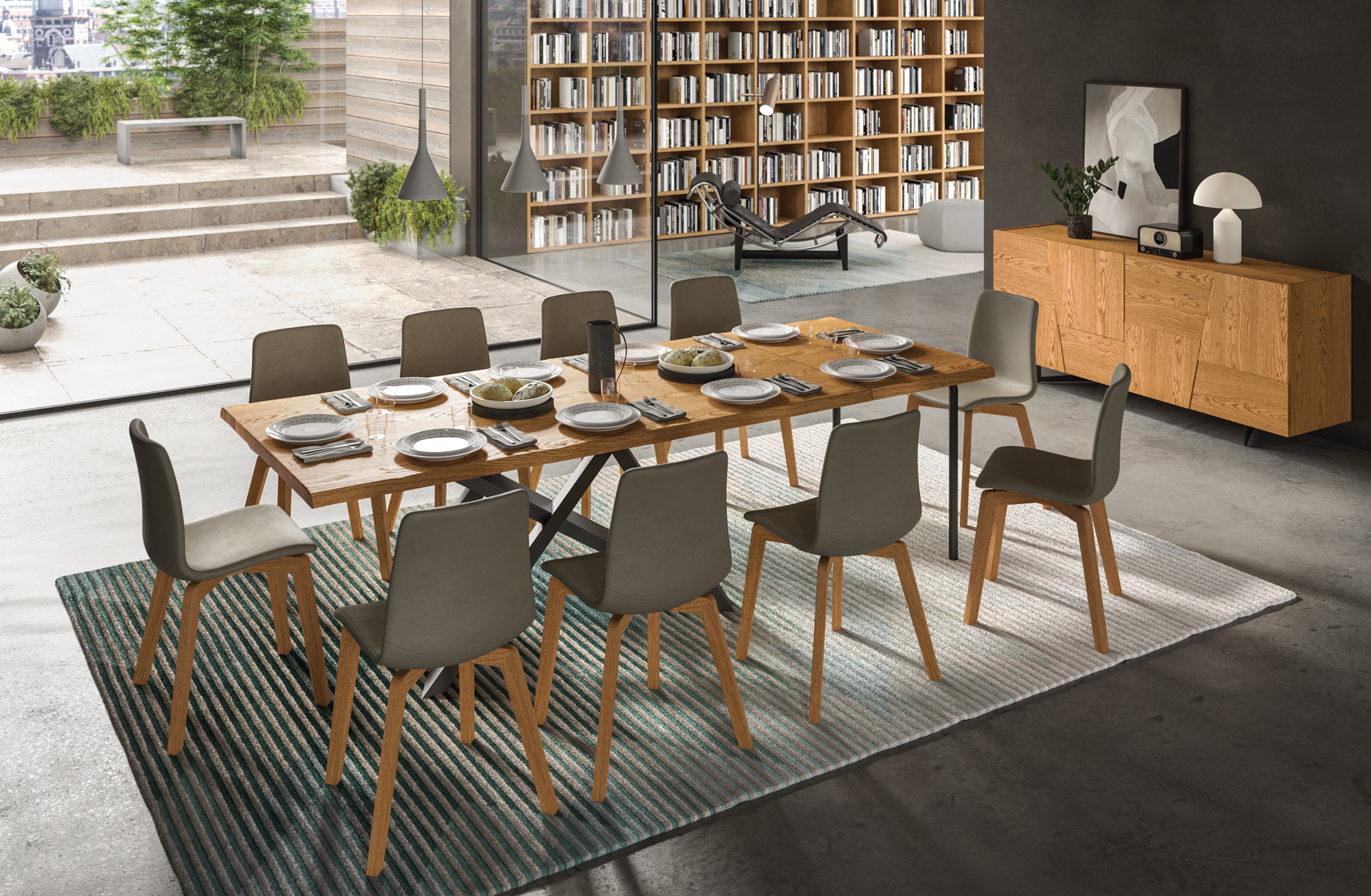 De Crossing-tafel is ontworpen om aan uw behoeften aan te passen. Dankzij de mogelijkheid om de tafel uit te breiden met een of meer verlengstukken, kunt u gemakkelijk vrienden en familie ontvangen en een compacte tafel transformeren in een ruim en uitnodigend oppervlak voor elke gelegenheid.