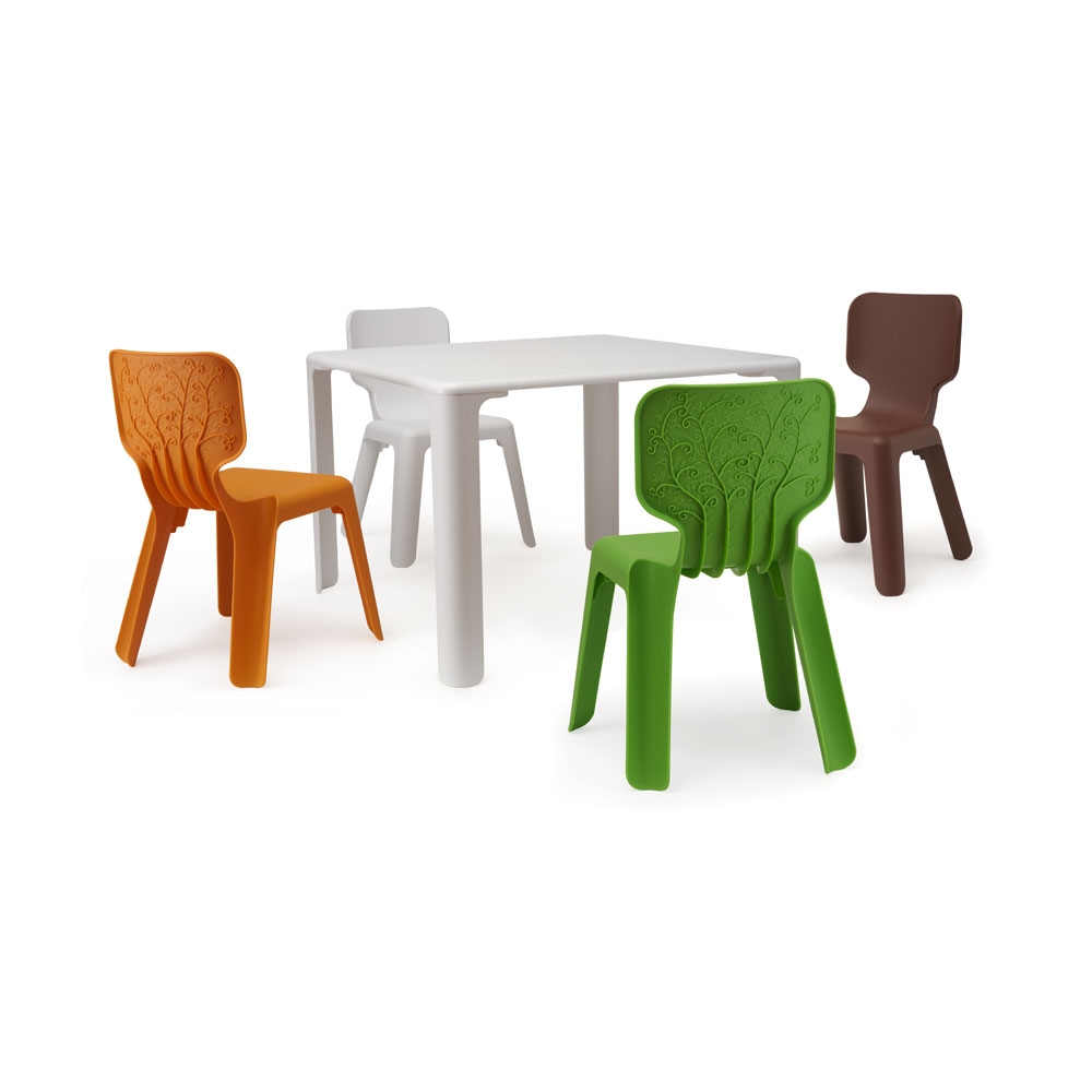 De Linus kindertafel van Magis heeft poten van polypropyleen en een blad van MDF. De Linus tafel is ontworpen door de Spaanse designer Javier Mariscal en maakt deel uit van de Me Too collectie, die volledig is gewijd aan kinderen. De tafel biedt de perfecte balans tussen kwaliteit en duurzaamheid, essentieel voor accessoires in de kinderkamer. Het sterke punt van Linus zijn de zachte, afgeronde randen , waardoor het een veilige tafel is, perfect voor het inrichten van een teken- en fantasiehoek, in combinatie met de stapelbare Alma stoel.