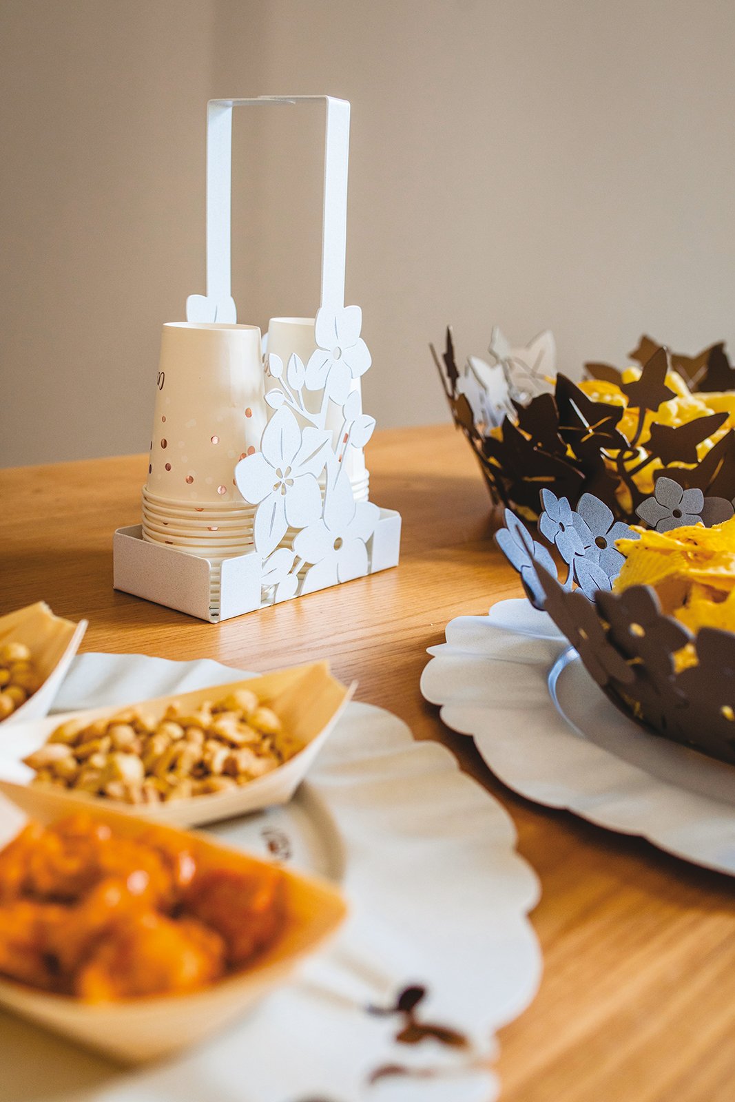 De glazenhouder met lotusbloemmotief is verkrijgbaar in drie kleuren en is klaar om een rol te spelen op jouw feest!