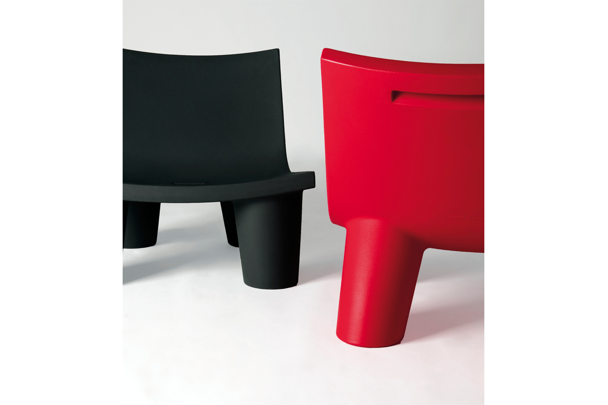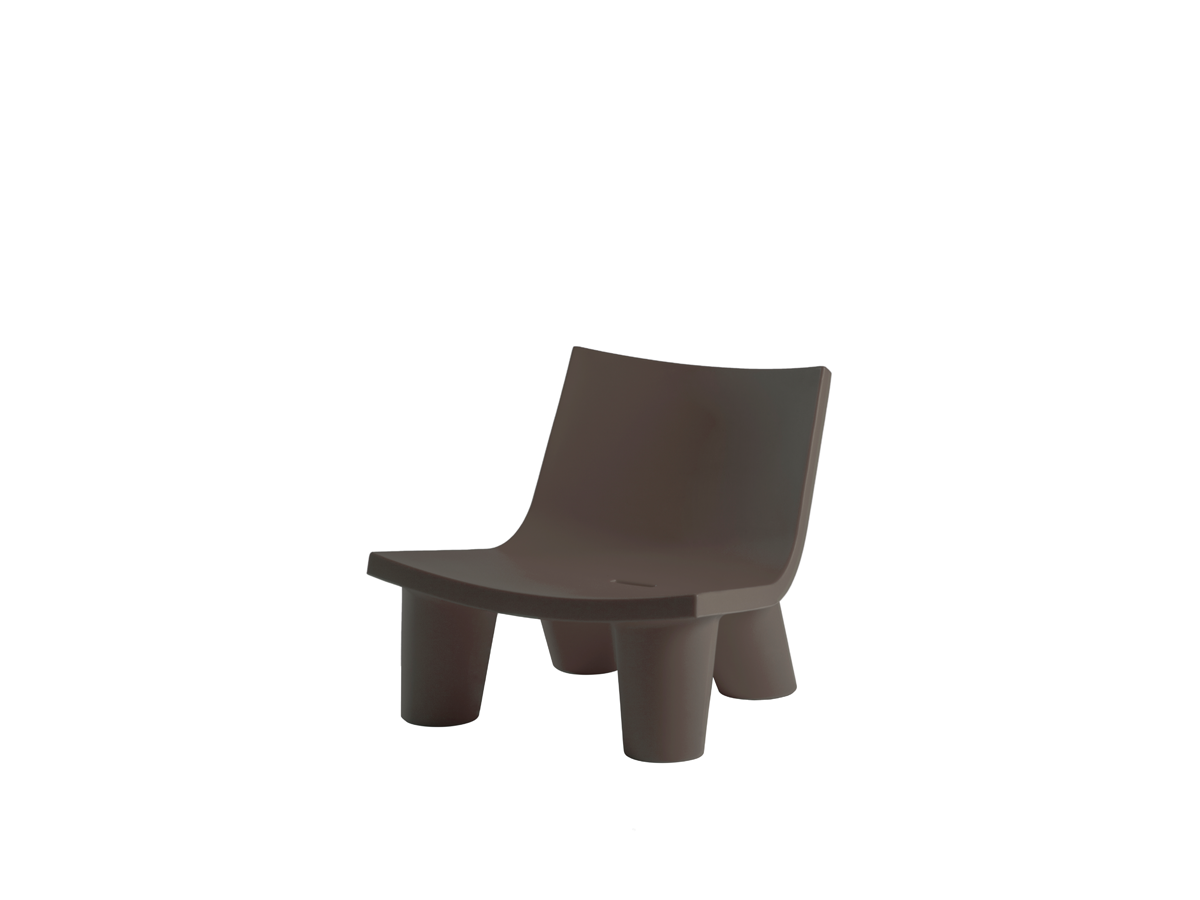 Het slanke, strakke ontwerp van de rugleuning en zitting contrasteert met de vier robuuste poten die het geheel ondersteunen, waardoor het een formele en functionele stevigheid krijgt. Het licht gebogen profiel van de basis, dat het steunvlak naar buiten verlengt, maakt Low Lita bijzonder uitnodigend en comfortabel.