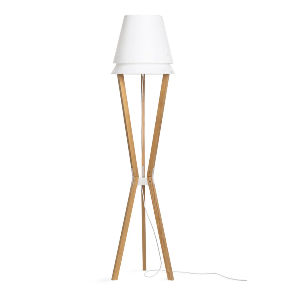 De stevige, houten structuur wordt gecombineerd met een lampenkap van polypropyleen die een zacht en omhullend licht verspreidt.