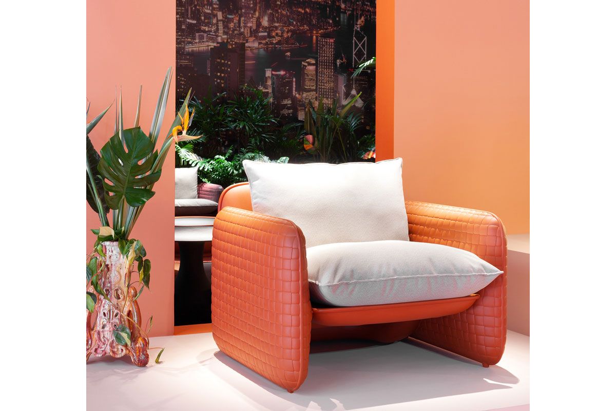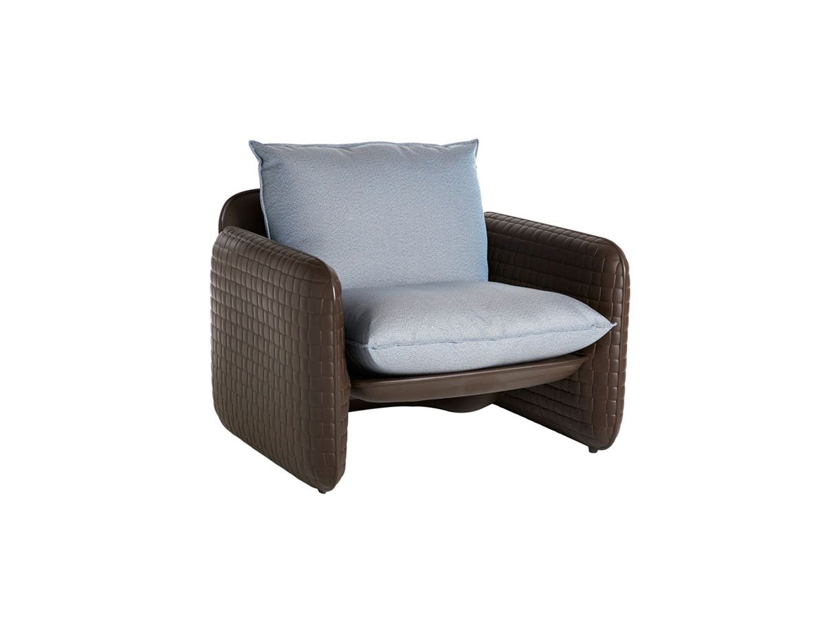 Het geweven leer is doorgetrokken in de gehele Mara loungestoel, ontworpen door Lorenza Bozzoli. De unieke textuur combineert prachtig met waterdichte stoffen kussens en is geschikt voor gebruik buitenshuis. Dankzij de comfortabele zitting is de Mara ideaal voor dakterrassen, tuinen en interieurprojecten. De Mara-collectie omvat ook de Mara tweezitsbank en de Mara Pouf poef. Afmetingen cm 106 x 94 x h 82 - zithoogte 52