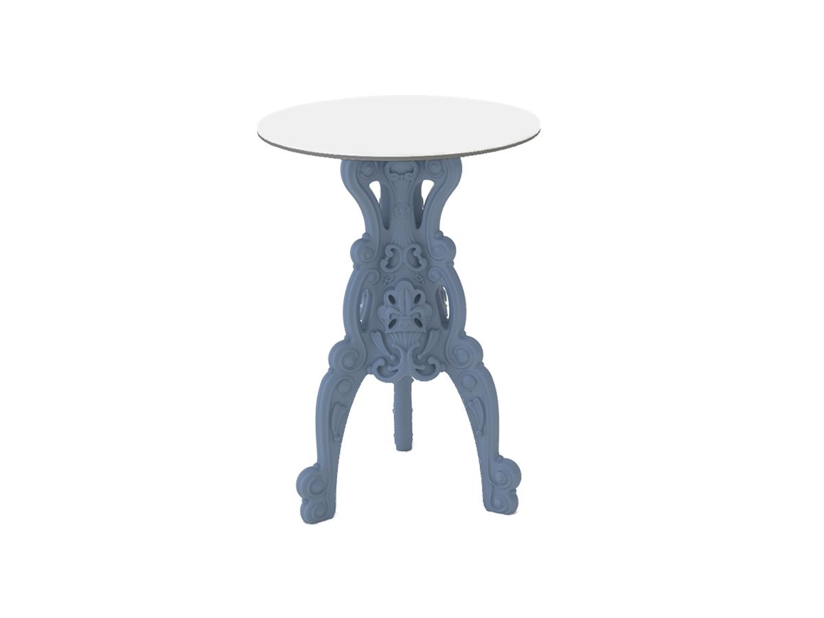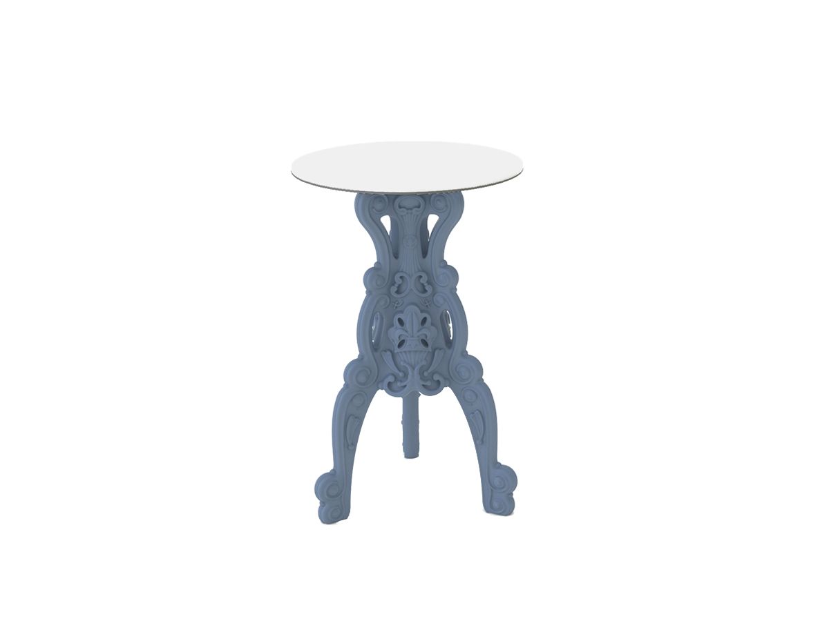 De MASTER OF LOVE hoge tafel maakt deel uit van de Design Of Love collectie en ademt dezelfde ironische en luxueuze sfeer uit. Met zijn gebogen poten, kenmerkend voor tafels in barokstijl, maar vervaardigd uit eigentijdse materialen, is dit product geschikt voor zowel binnen als buiten en zal het zeker de aandacht trekken.