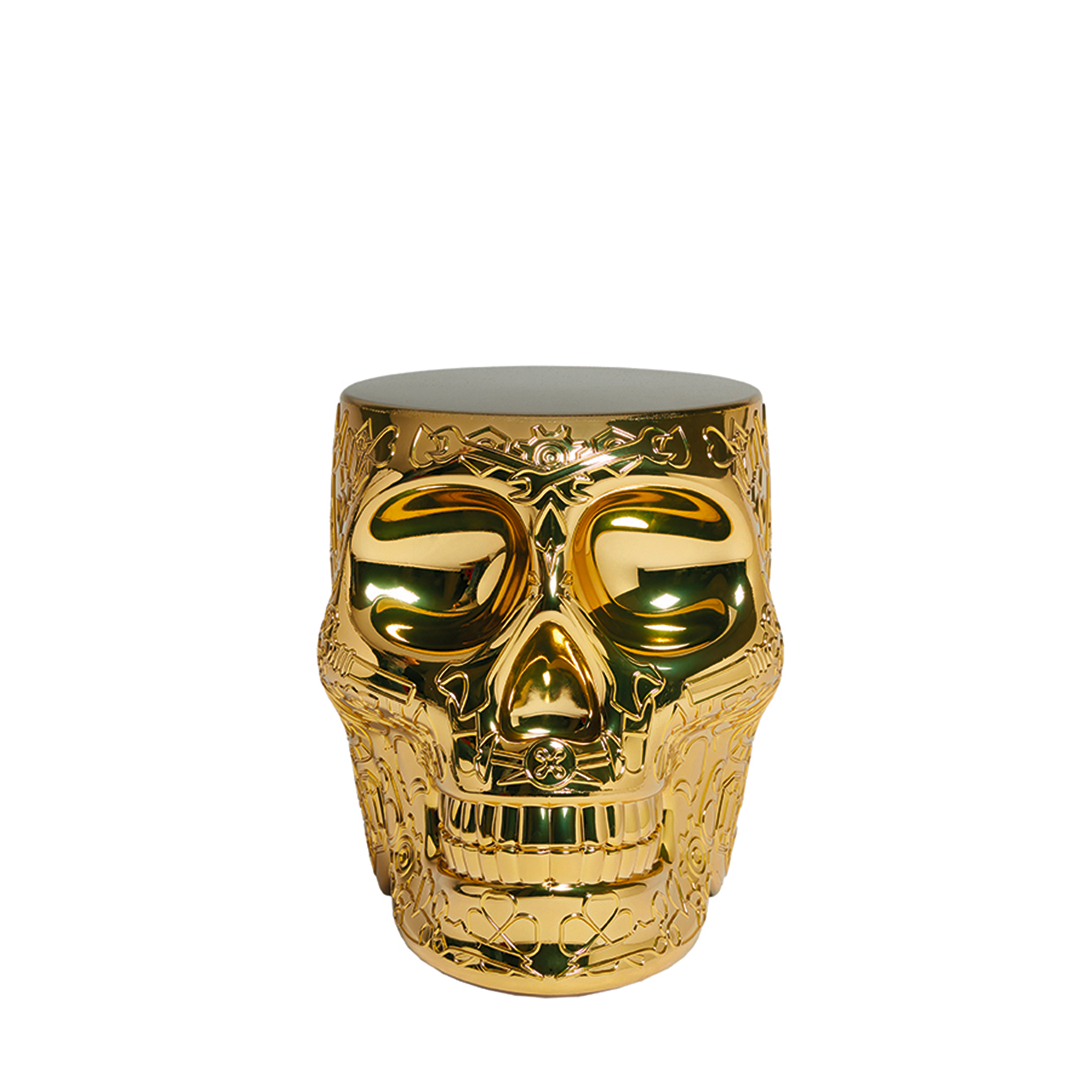 Mexico, ontworpen door Studio Job, is een schedelvormig designobject met een grafisch patroon op het oppervlak, dat zowel als kruk als salontafel kan dienen. Het object doet denken aan de traditionele beschilderde schedels van het land waarnaar het is vernoemd en is een speelse verwijzing naar de cyclische aard van ons bestaan op aarde, om de dood te verdrijven en het leven te vieren. Het is gemaakt van metaal en is alleen geschikt voor gebruik binnenshuis.