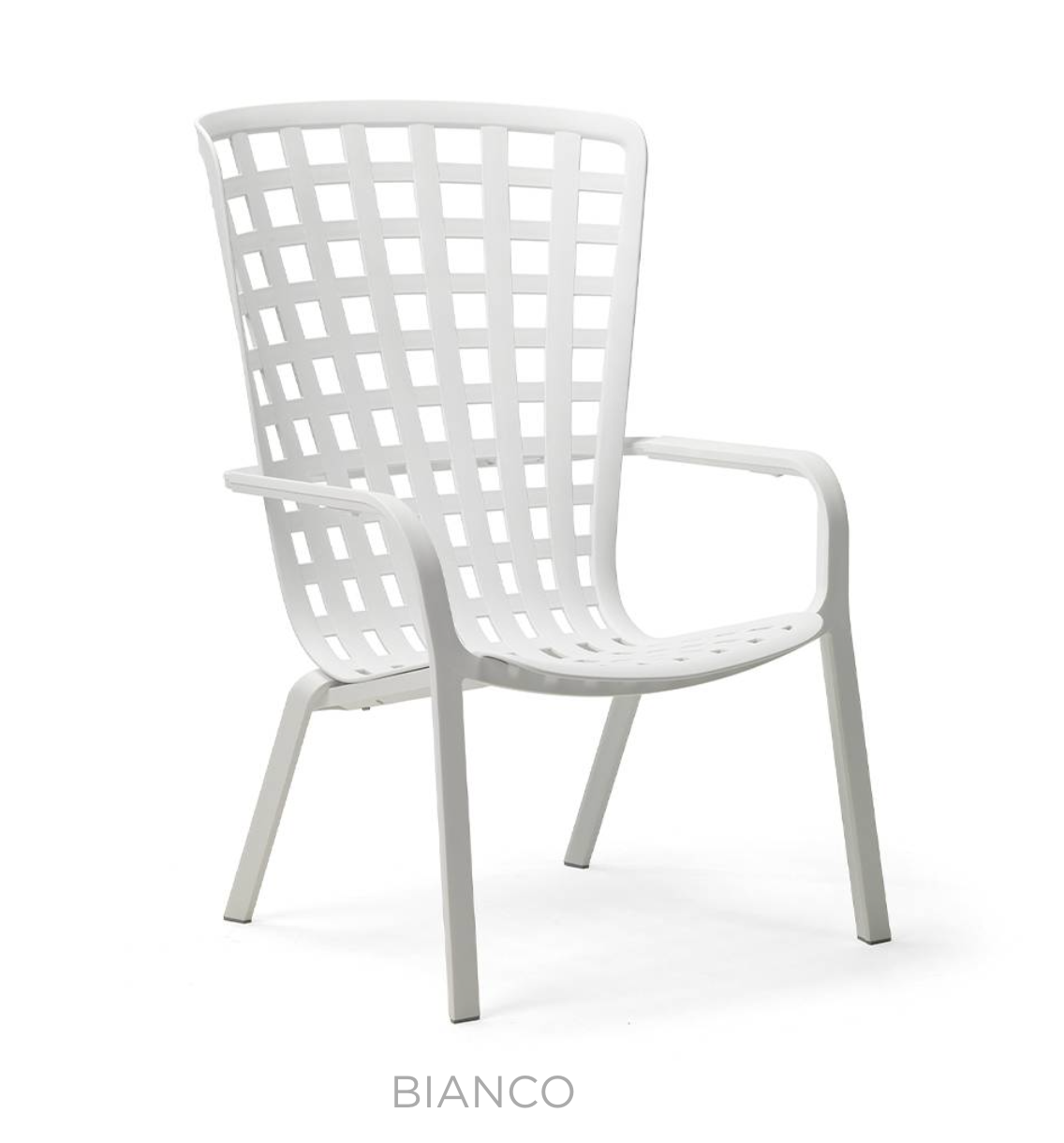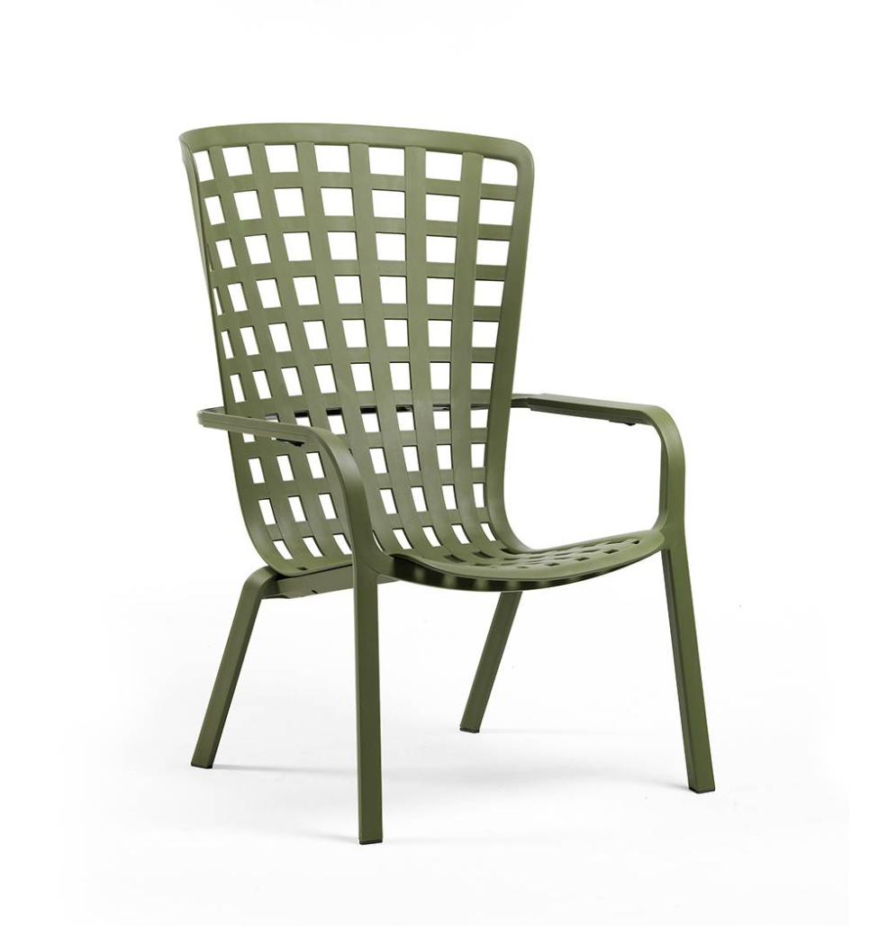 Folio is een relaxfauteuil voor buiten, gemaakt van geperforeerd glasvezelhars met een ruitpatroon en een matte afwerking. De fauteuil heeft een omhullende rugleuning die naadloos aansluit op de royaal verlaagde zitting, een unieke en verfijnde constructie die in twee comfortabele standen verstelbaar is.