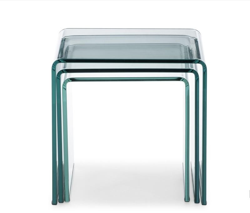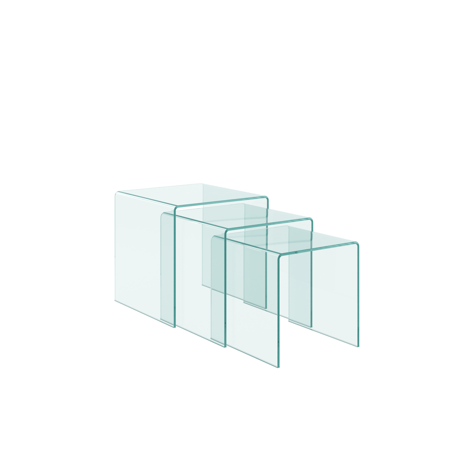 Met de Nest salontafel brengt de schoonheid van glas op smaakvolle wijze een verfijnd interieur en weerspiegelt de designtradities van het oude China. Antieke salontafels krijgen een moderne twist en passen bij een breed scala aan interieurs. Voor liefhebbers van klassieke stijl is glas die vleugje klasse die een kamer uitnodigend en elegant maakt. Ook perfect in een moderne omgeving is het gebogen glas tijdloos en voegt het een unieke glans toe. De Nest salontafel is de ideale oplossing voor wie elke hoek van zijn huis optimaal wil benutten. Zo heeft u niet slechts één salontafel, maar drie Nest tafels die, ingeklapt, geen ruimte innemen. De Nest salontafel is ontworpen om ruimte te optimaliseren, waardoor de vorm ervoor zorgt dat hij weinig ruimte inneemt en toch drie opbergvlakken biedt. Een prachtig en functioneel meubelstuk, perfect voor een woonkamer, slaapkamer of studeerkamer. Afmetingen: Kleine tafel: L.34 x D.34 x H.34 Middelgrote tafel: L.38 D.38 H.38 Grote tafel: L.42 x D.42 x H.42 Glasdikte: 12 mm