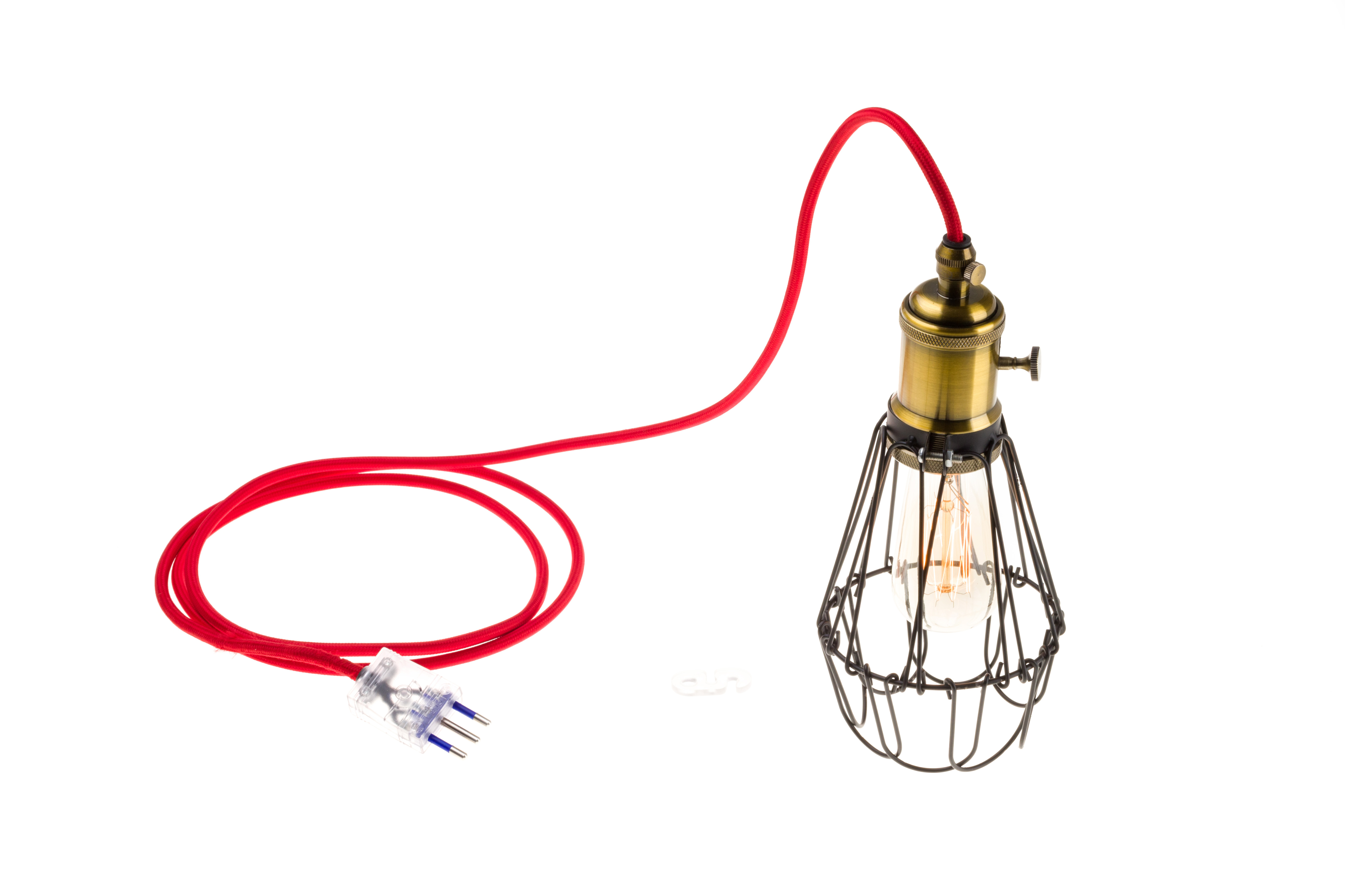 Koperen metalen draaischakelaar, compleet met haak voor bevestiging aan het plafond.
