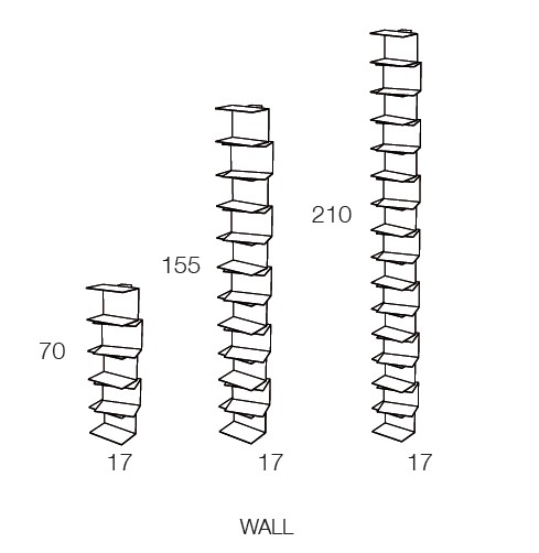 Absoluut onmisbaar, het is de ideale oplossing voor wie beperkte ruimte heeft en de verticale mogelijkheden optimaal wil benutten. Ptolomeo Wall is perfect voor het creëren van potentieel oneindige boekenzuilen die de zwaartekracht lijken te trotseren. Van gewone appartementen tot zeer hoge lofts, er is geen plafond dat niet bereikt kan worden door de drie beschikbare formaten van Ptolomeo Wall vakkundig aan te passen.