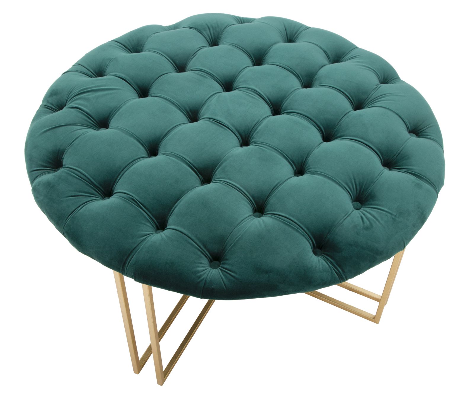 Poef met een goudkleurig metalen frame en een gewatteerde, doorgestikte zitting van synthetisch fluweel. Het eenvoudige, strakke ontwerp voegt een vleugje elegantie toe aan elke ruimte.