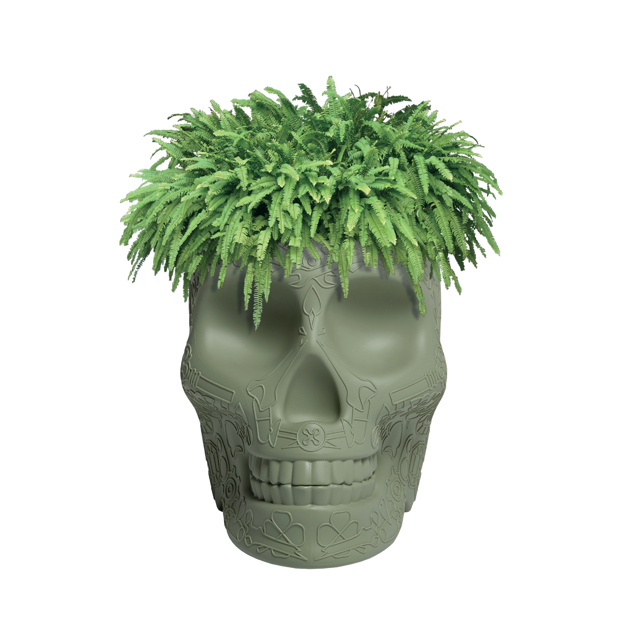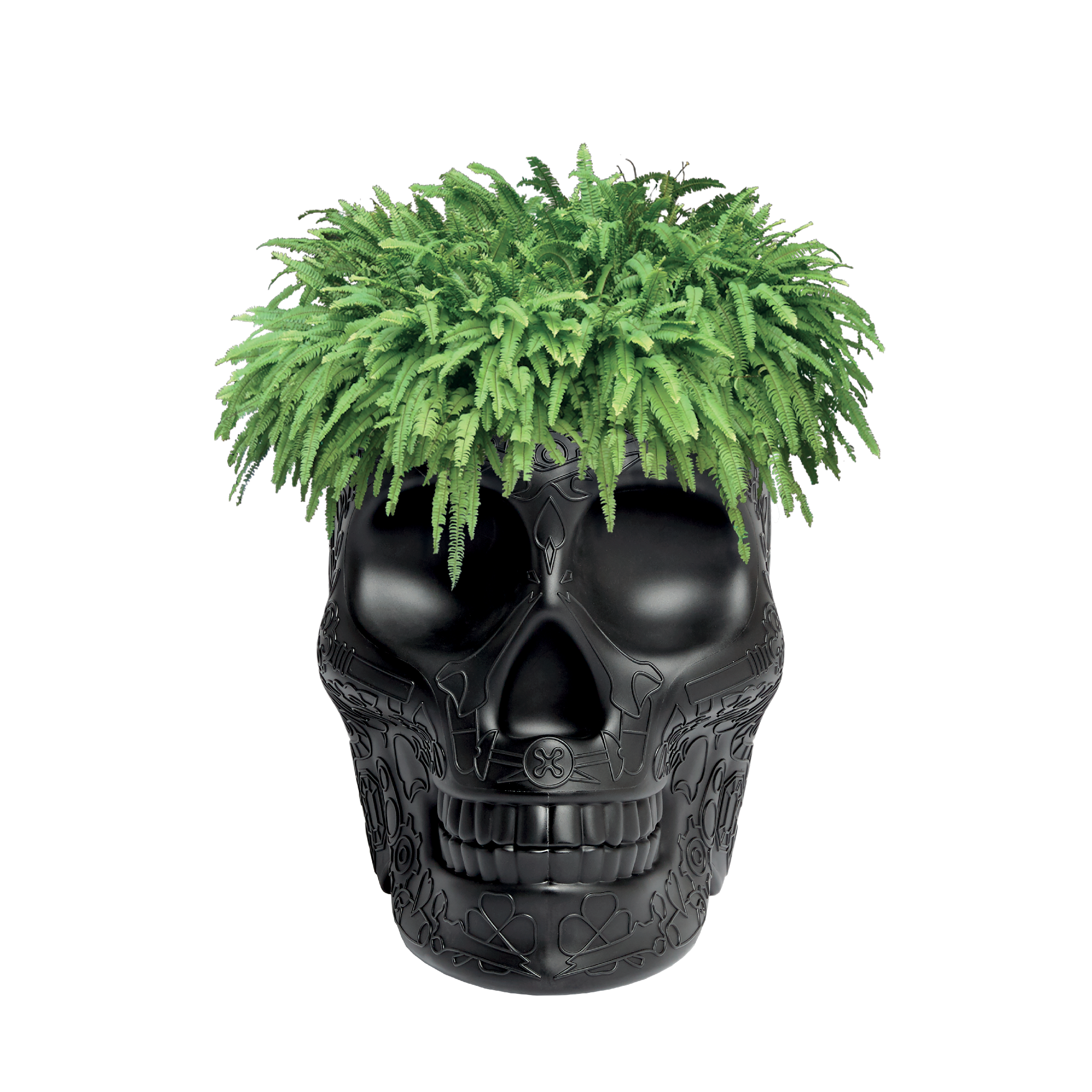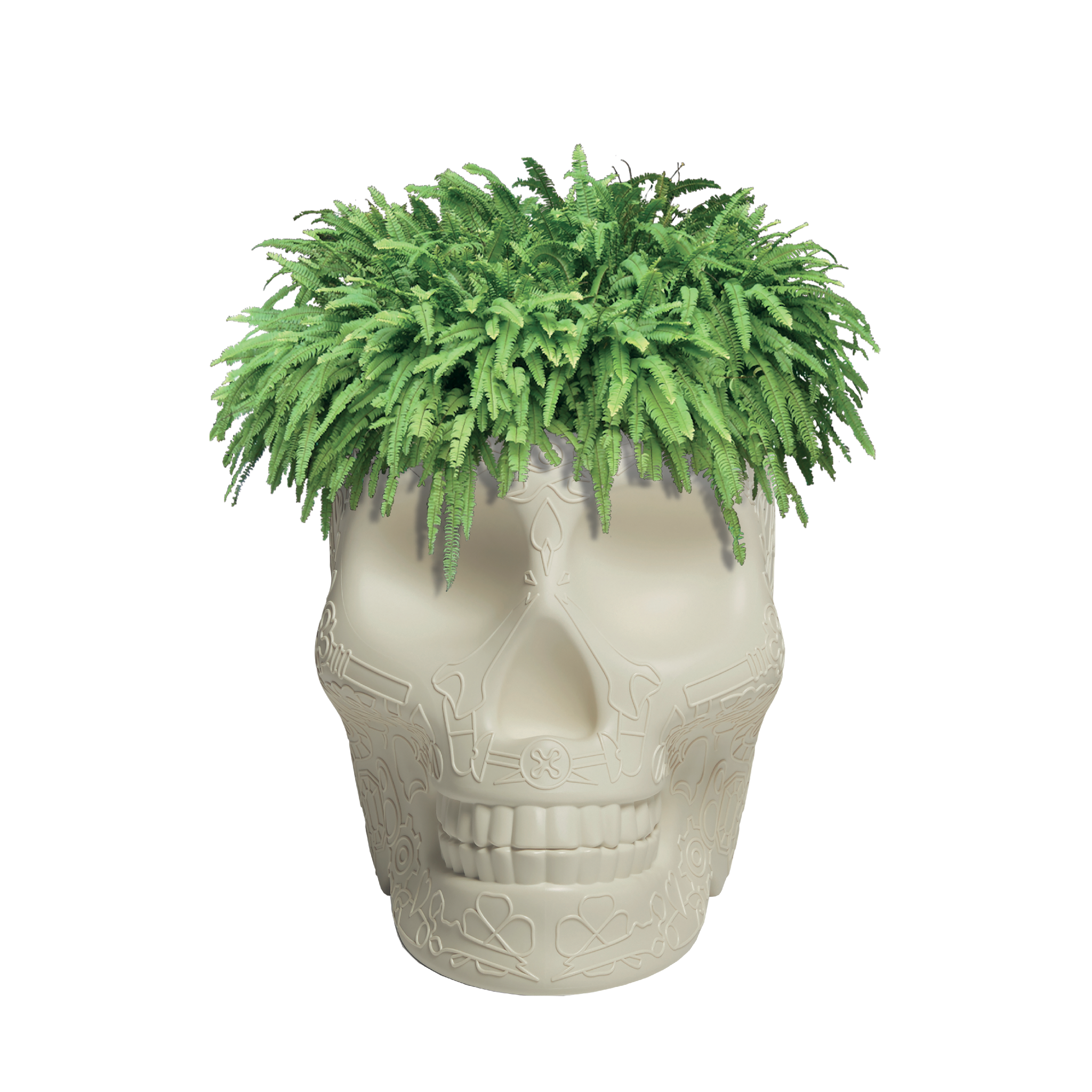Mexico, ontworpen door Studio Job, is een schedelvormig designobject met een grafisch patroon op het oppervlak, dat zowel als plantenbak als champagnekoeler functioneert. Het object doet denken aan de traditionele beschilderde schedels van het land waarnaar het is vernoemd en is een speelse verwijzing naar de cyclische aard van ons bestaan op aarde, om de dood te verdrijven en het leven te vieren. Perfect voor lounges, eetkamers en buitenruimtes.