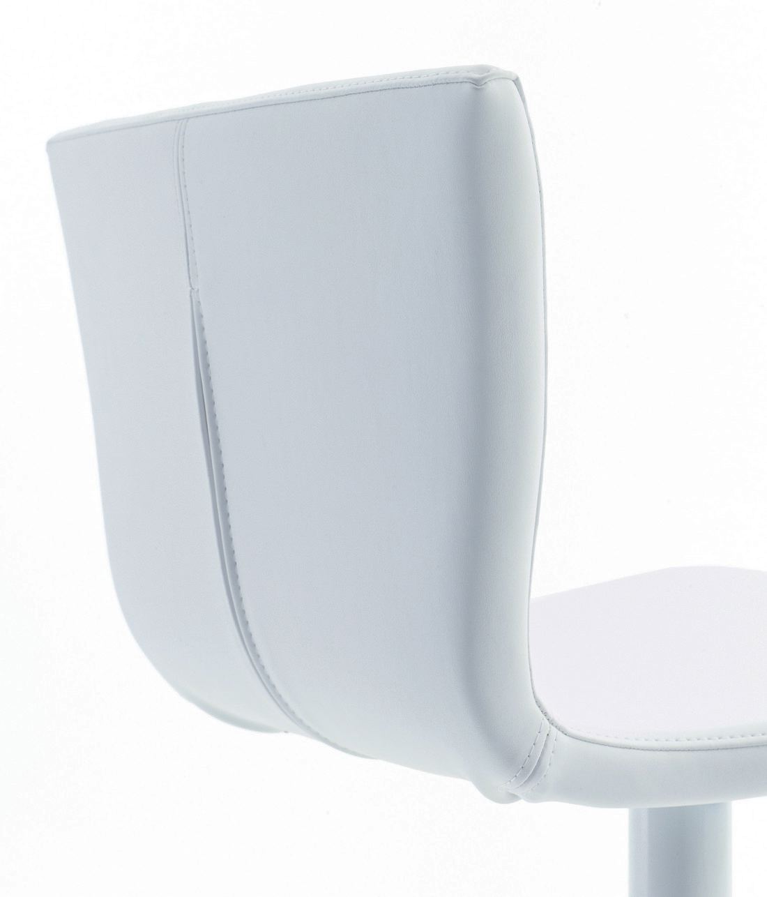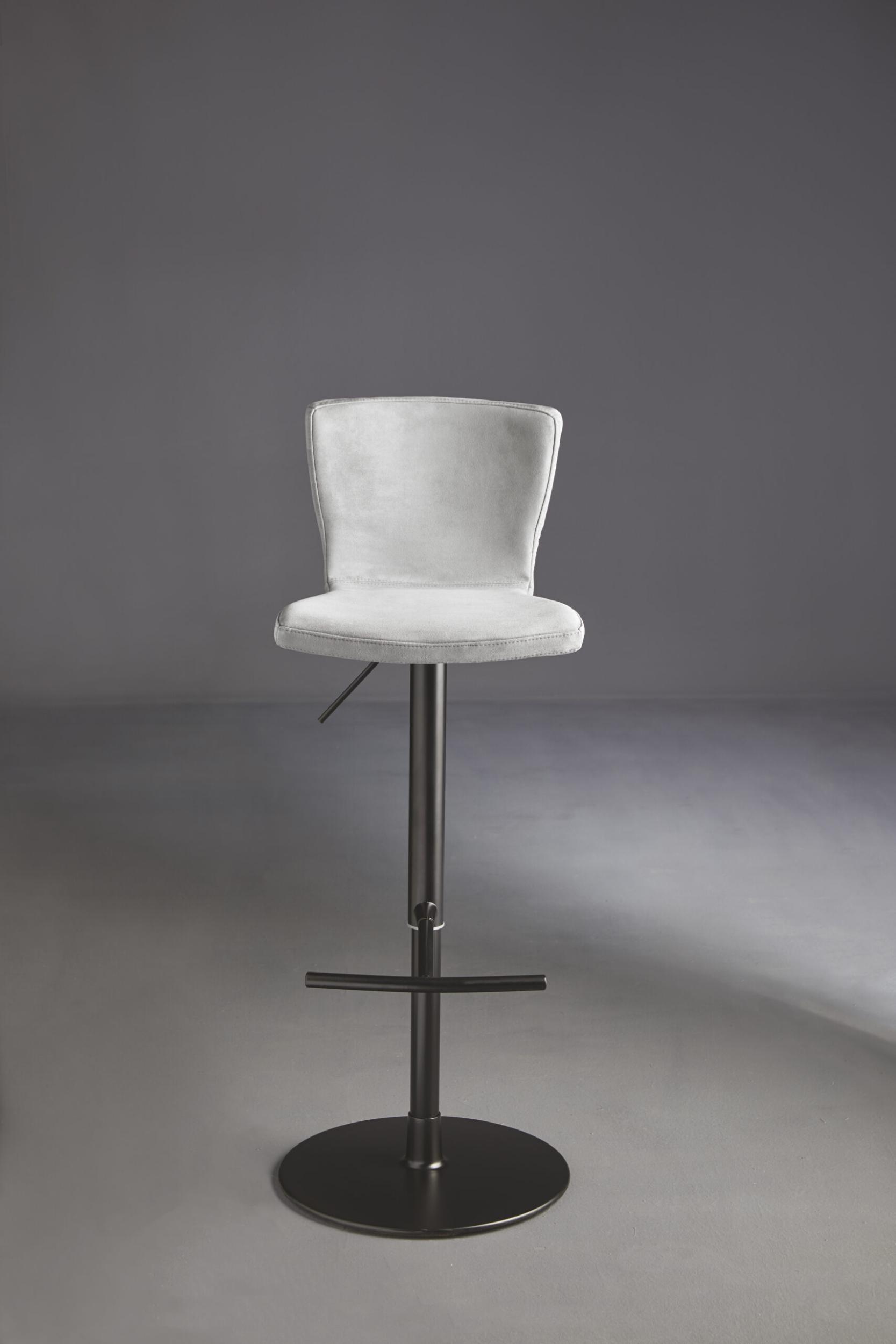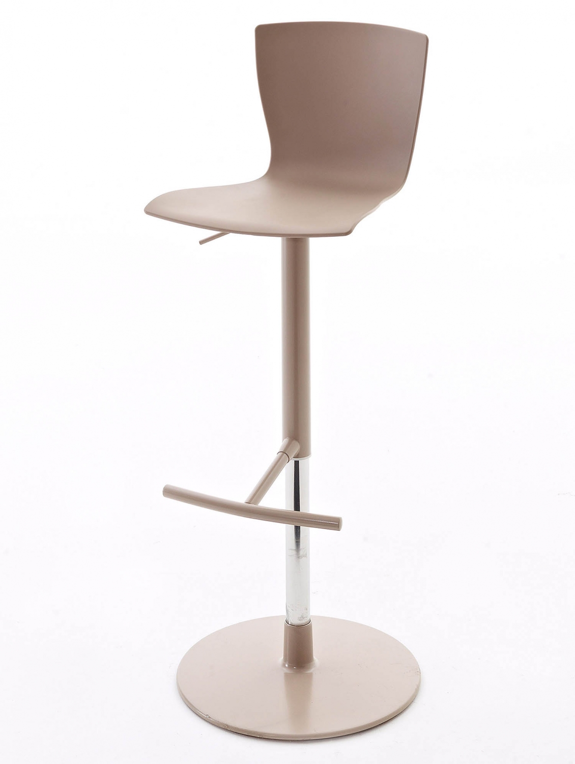 In hoogte verstelbare kruk met frame van aluminium en staal, stalen zuiger en draaibare zitting van zacht aanvoelend polypropyleen of bekleed met stof/kunstleer.