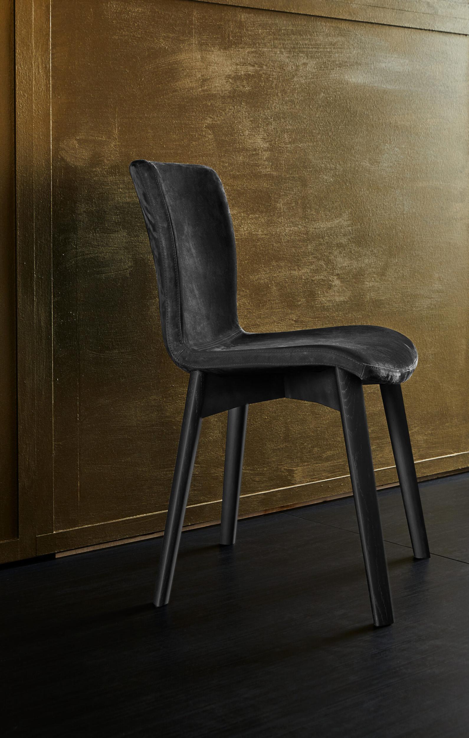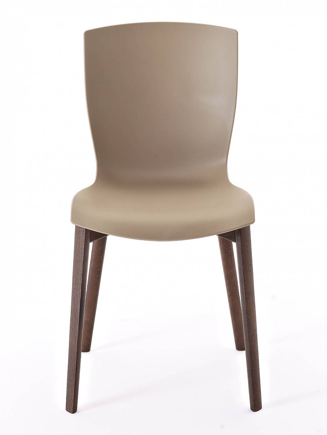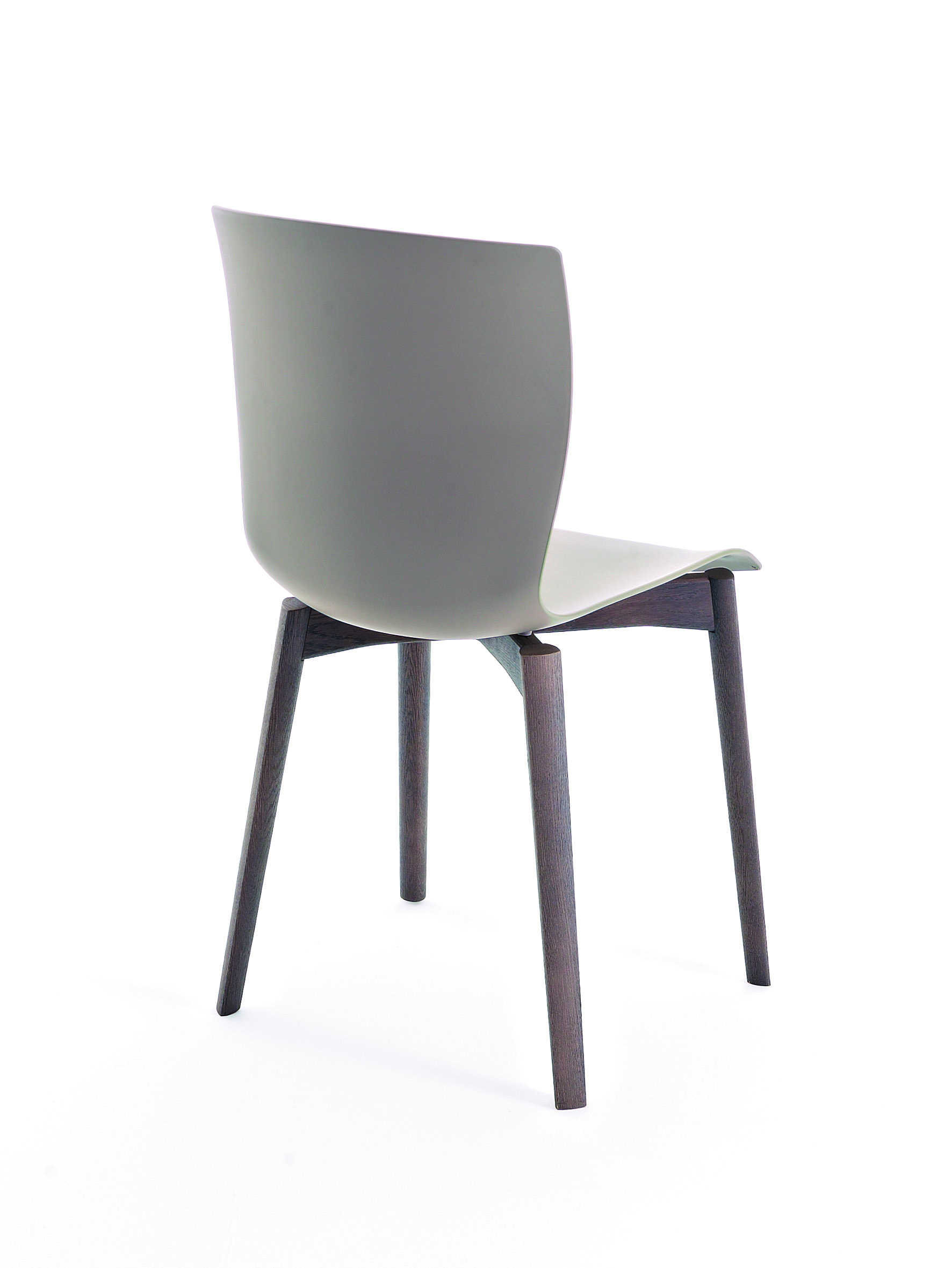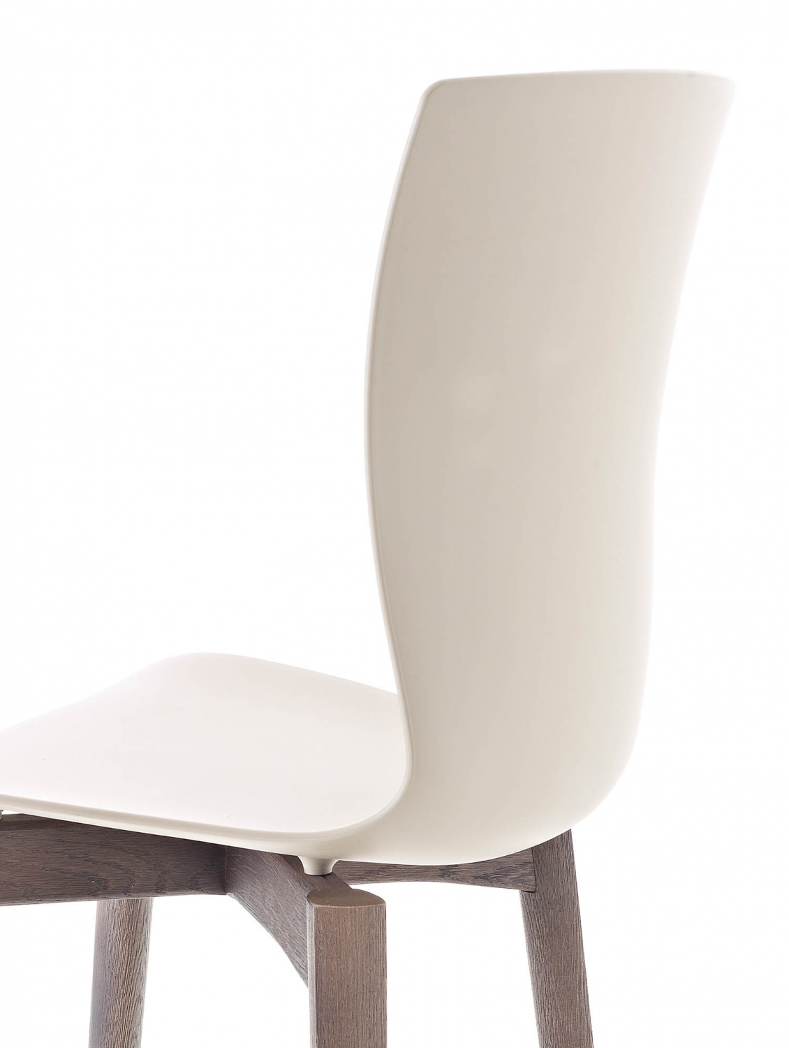 Stoel met een frame van eikenhout en een zitting van zacht aanvoelend polypropyleen.