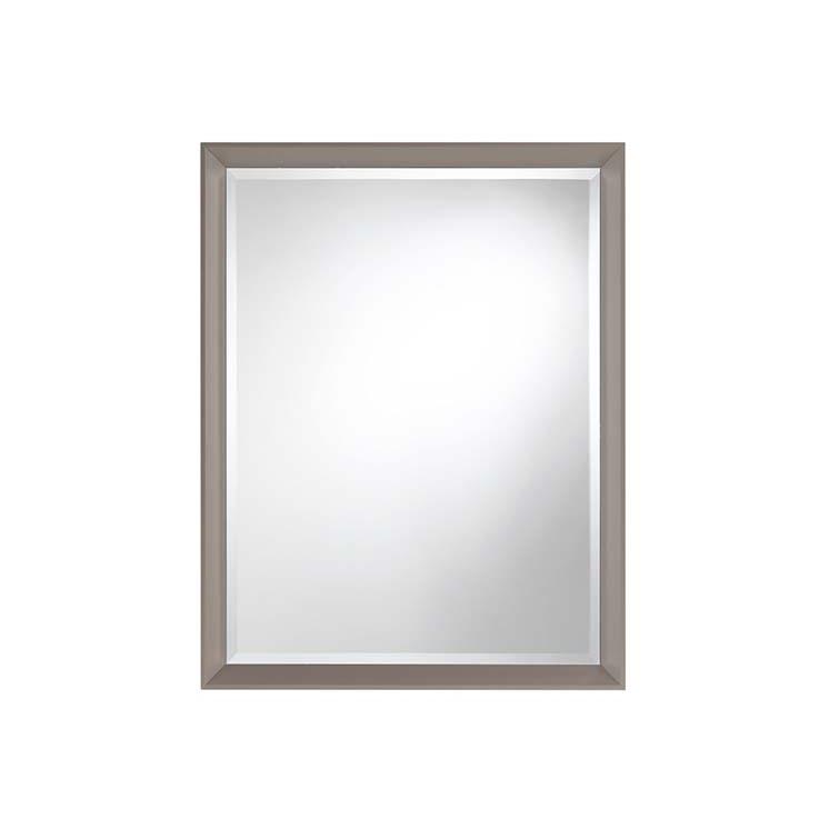 De Riflesso-spiegel heeft een aluminium frame, verkrijgbaar met een satijnchromen of gezandstraalde lakafwerking, en gehard en afgeschuind spiegelglas.