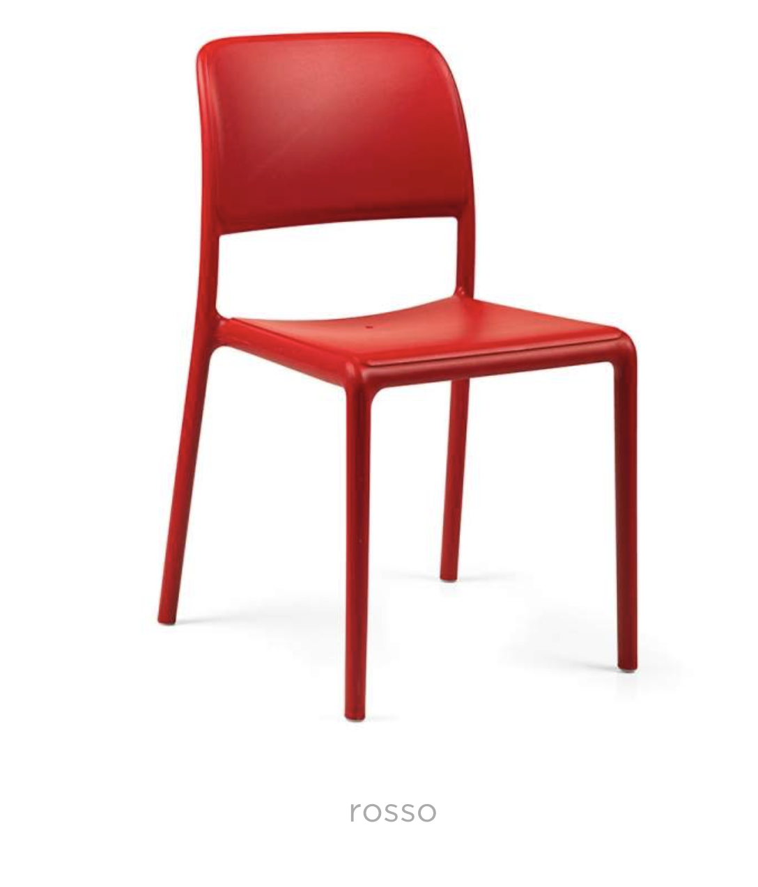 Monobloc stoel zonder armleuningen. UV-behandeld, in de massa gekleurd glasvezelpolypropyleen. Matte afwerking. Voorzien van antislipvoetjes. Recyclebare kunststof.